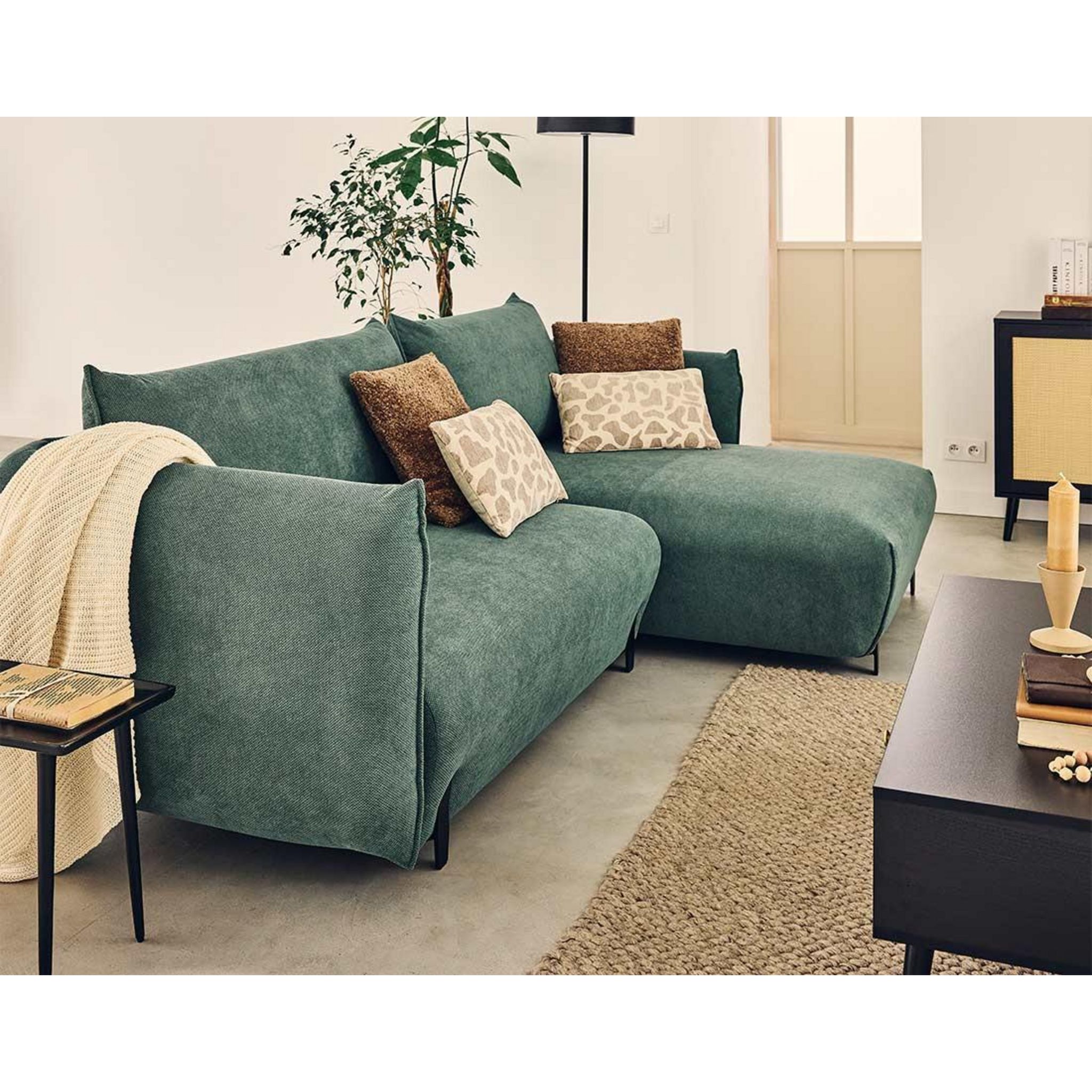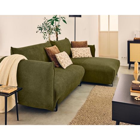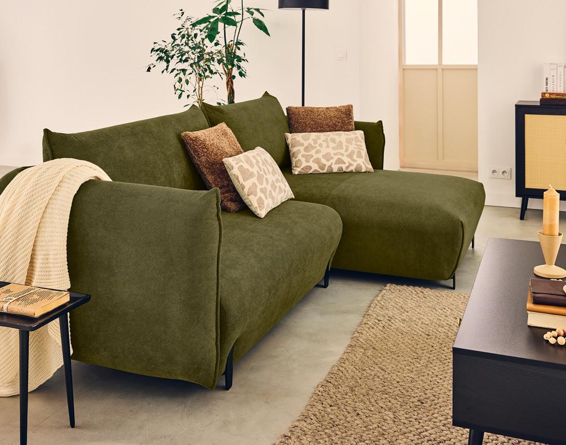 Gianni est un canapé d'angle droit très pratique parce qu'il est confortable, convertible et qu'il dispose d'un large coffre de rangement. Avec ses généreuses dimensions de 256 cm de largeur et 156 cm de profondeur, il offre un espace accueillant pour vous détendre seul, en famille ou entre amis. Sa hauteur totale avec coussins de 88 cm assure un soutien optimal pour le dos et la tête , le bonheur de se reposer pleinement ! Son revêtement en tissu, très doux et très chaleureux, crée un espace cosy dans votre intérieur. Ce matériau de qualité combine esthétique et durabilité, pour un canapé qui résiste aux aléas du quotidien. Disponible dans une large gamme de couleurs, le canapé Gianni s'adapte à tous les styles : vert olive, beige, rouge, bleu marine, noir ou gris. Avec ses lignes épurées et ses pieds hauts en métal, Gianni apporte une légèreté visuelle à votre pièce. Et il facilite le nettoyage en dessous. Il est facile à entretenir et ne s'abîme pas avec le temps.
