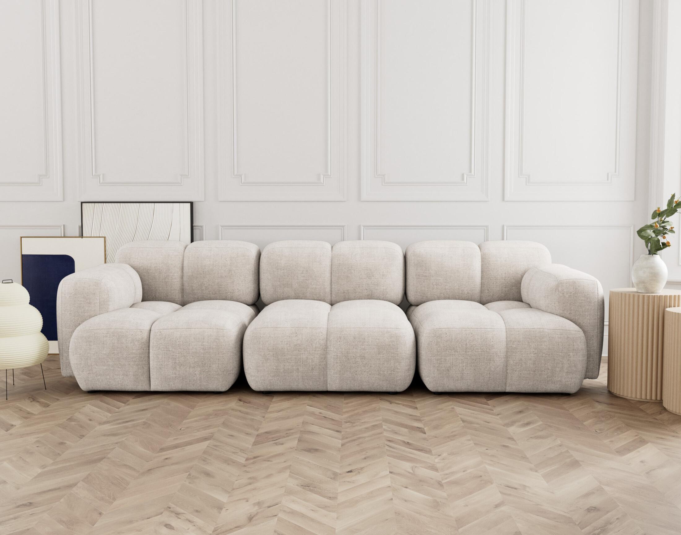 Le canapé 3 places Grace affirme son style avec un format généreux et une silhouette tout en rondeur. Idéal pour recevoir ou s'étendre confortablement, il incarne la rencontre parfaite entre esthétisme et fonctionnalité. Conçu pour s'intégrer à la collection modulable, il vous permet de créer un salon spacieux, parfaitement adapté à votre mode de vie.