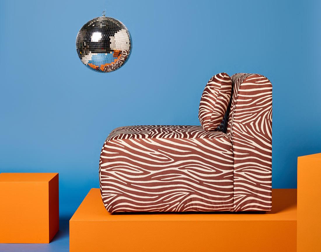 Ikare : Module d'assise zèbre en velours pour un intérieur audacieux
