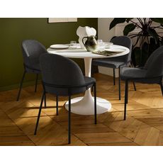 Le lot de 4 chaises Imelda en tissu gris anthracite séduit par son design épuré et moderne, parfait pour sublimer une salle à manger ou un salon contemporain. Avec leurs lignes simples et leur allure sophistiquée, ces chaises s'intègrent harmonieusement dans divers environnements, apportant une touche de chic discret. Le tissu rembourré de l'assise assure un confort optimal, idéal pour des repas prolongés ou des moments de détente, tout en conférant une sensation de douceur et de chaleur à votre intérieur.