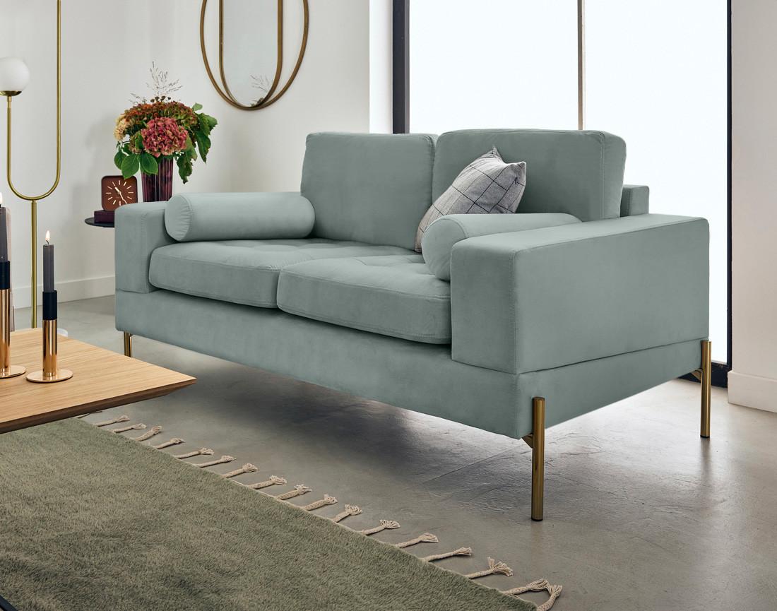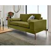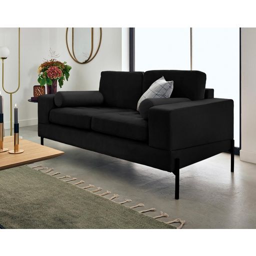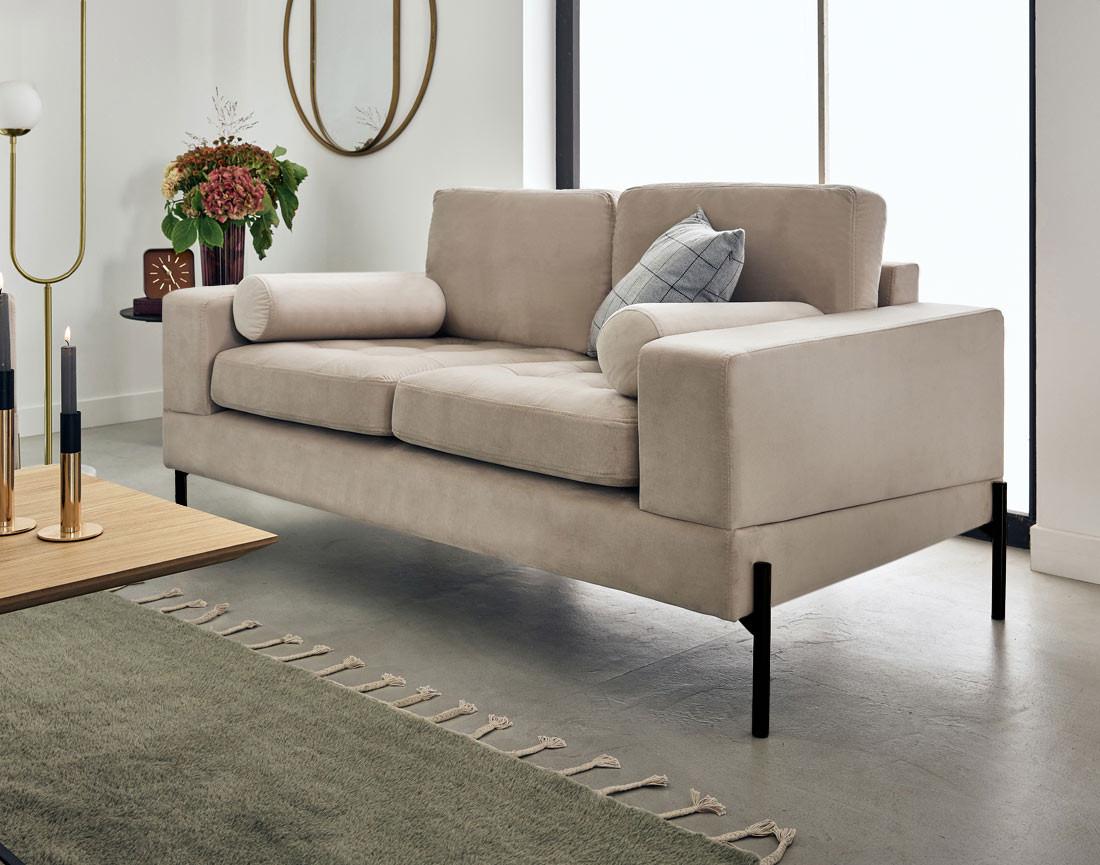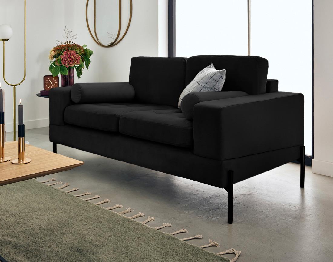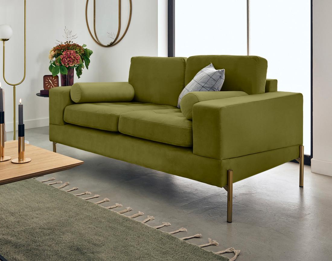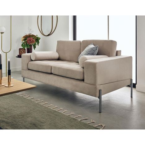 Les coussins de dossier, d'une dimension de 75x55x20 cm, et les coussins décoratifs cylindriques (53x15x15 cm) inclus avec le canapé sont spécialement conçus pour vous offrir un confort optimal. Doux et moelleux, ils soutiennent agréablement votre dos, votre nuque ou vos jambes. Grâce à son assise capitonnée et son rembourrage de haute qualité, ce canapé en velours vous invite à des moments de détente prolongée. La structure de l'assise repose sur des ressorts ondulés et une mousse hautement élastique , le soutien est ferme, mais reste quand même bien souple. Fabriquée en Europe avec des matériaux de qualité, cette pièce de mobilier est harmonieuse, moderne et raffinée. Elle apportera à votre intérieur la touche de chaleur que vous recherchez.