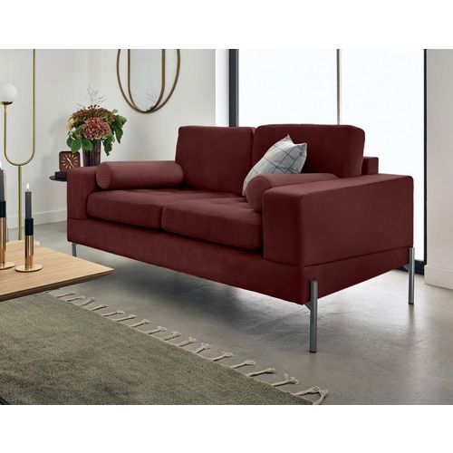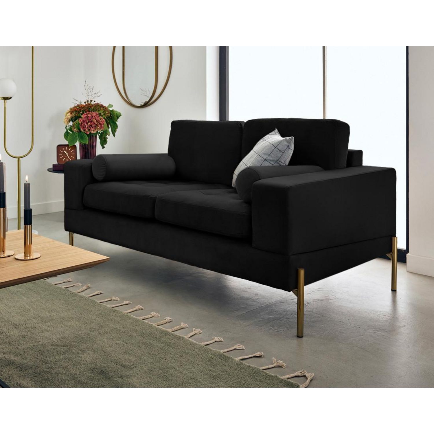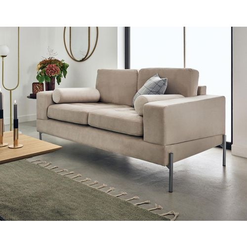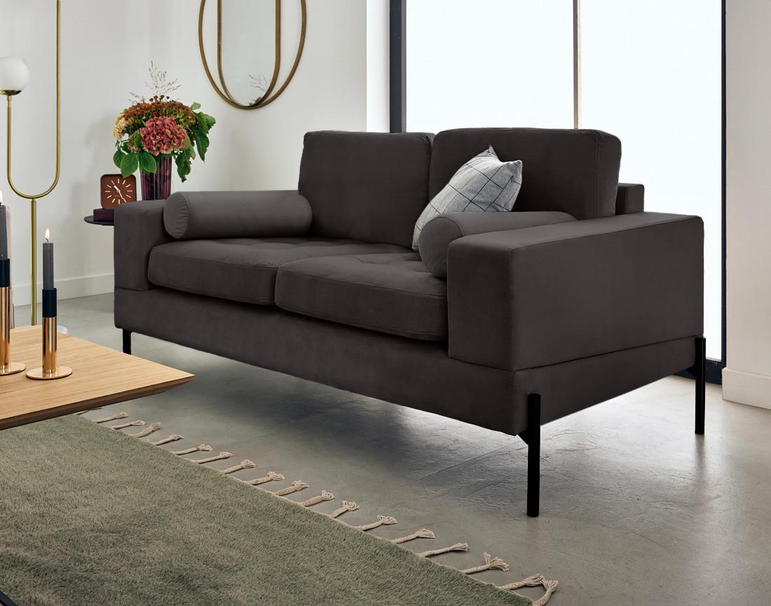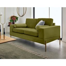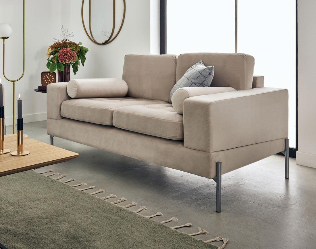Les coussins de dossier, d'une dimension de 75x55x20 cm, et les coussins décoratifs cylindriques (53x15x15 cm) inclus avec le canapé sont spécialement conçus pour vous offrir un confort optimal. Doux et moelleux, ils soutiennent agréablement votre dos, votre nuque ou vos jambes. Grâce à son assise capitonnée et son rembourrage de haute qualité, ce canapé en velours vous invite à des moments de détente prolongée. La structure de l'assise repose sur des ressorts ondulés et une mousse hautement élastique , le soutien est ferme, mais reste quand même bien souple. Fabriquée en Europe avec des matériaux de qualité, cette pièce de mobilier est harmonieuse, moderne et raffinée. Elle apportera à votre intérieur la touche de chaleur que vous recherchez.