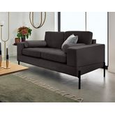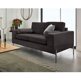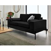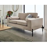 - Détail des matières : Assise et dossier : Mousse polyuréthane 30kg/m3 - Suspensions : Ressorts ondulés - Structure en bois massif et panneaux de particules - Revêtement en velours 100% polyester - Pieds en métal