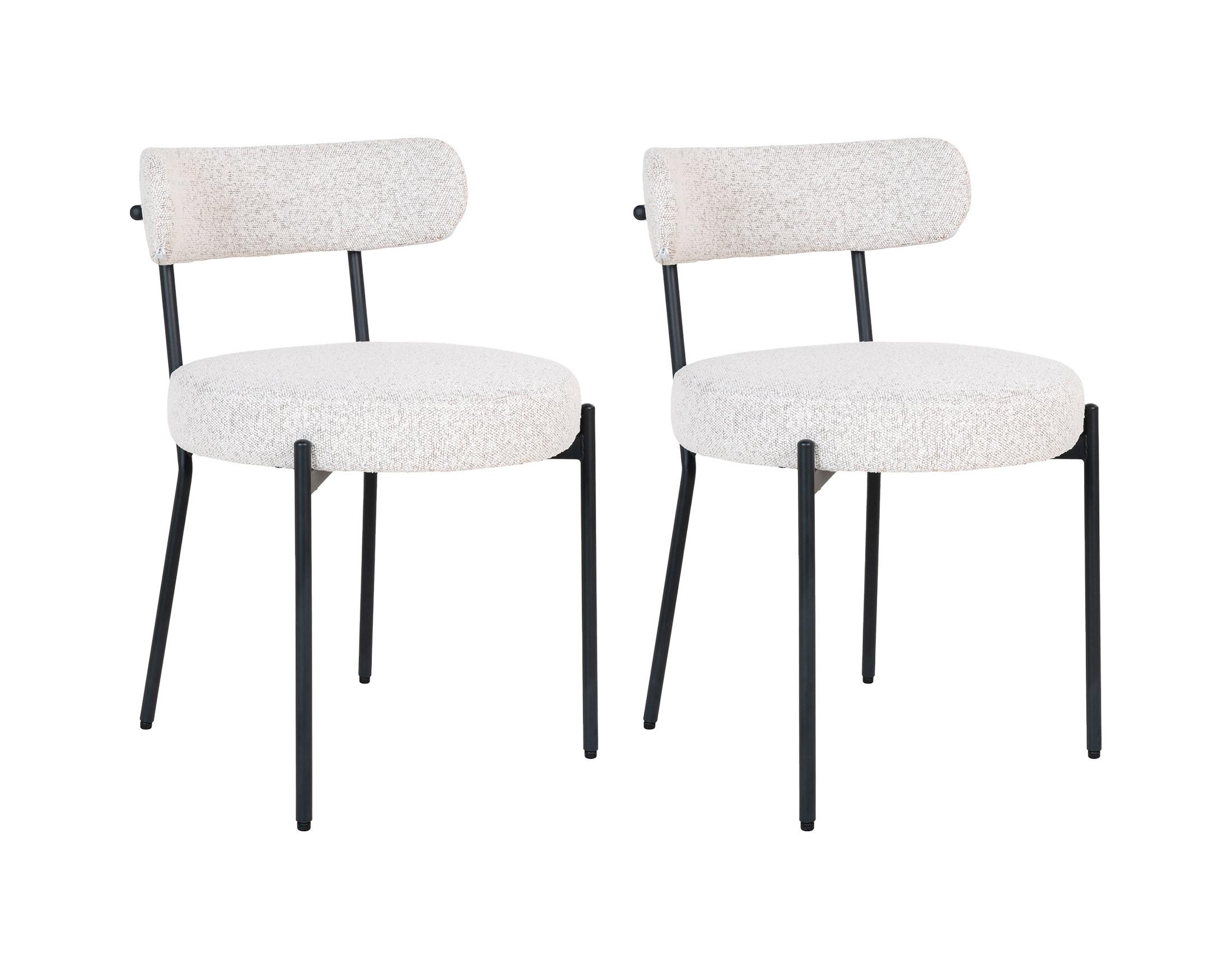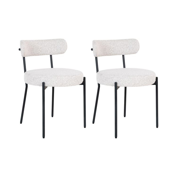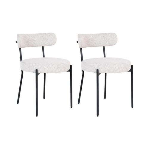 Créez une ambiance chaleureuse avec le lot de deux chaises Ivanec. Le duo entre son assise de couleur blanche et son piètement noir forme un contraste très moderne. Vous apprécierez les formes arrondies de ces chaises ainsi que son revêtement en tissu bouclette très tendance. Sa solidité est renforcée par sa structure en contreplaqué et ses pieds en métal. Son confort, quant à lui, est assuré grâce à son assise et son dossier garnis de mousse polyuréthane.