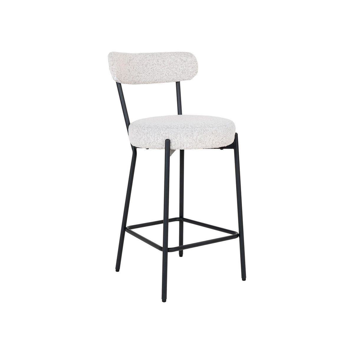 Créez une ambiance chaleureuse avec le tabouret de bar Ivanec. Le duo entre son assise de couleur blanche et son piètement noir forme un contraste très moderne. Vous apprécierez la forme arrondie de ce tabouret ainsi que son revêtement en tissu bouclette très tendance. Sa solidité est renforcée par sa structure en contreplaqué et ses pieds en métal. Son confort, quant à lui, est assuré grâce à son assise et son dossier garnis de mousse polyuréthane.