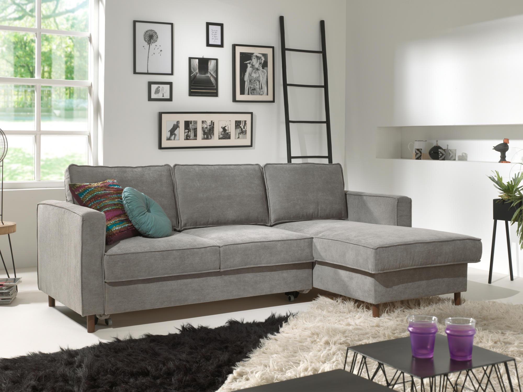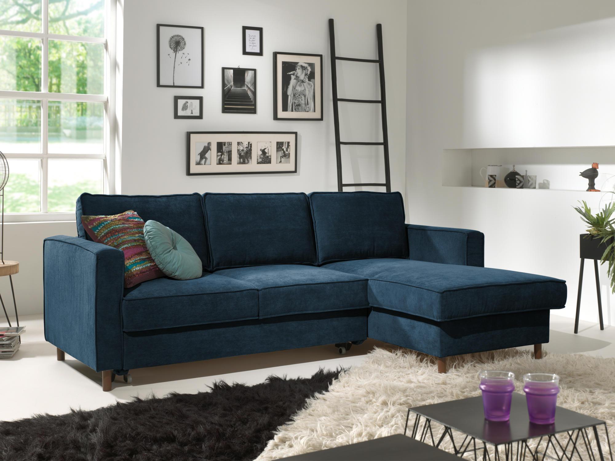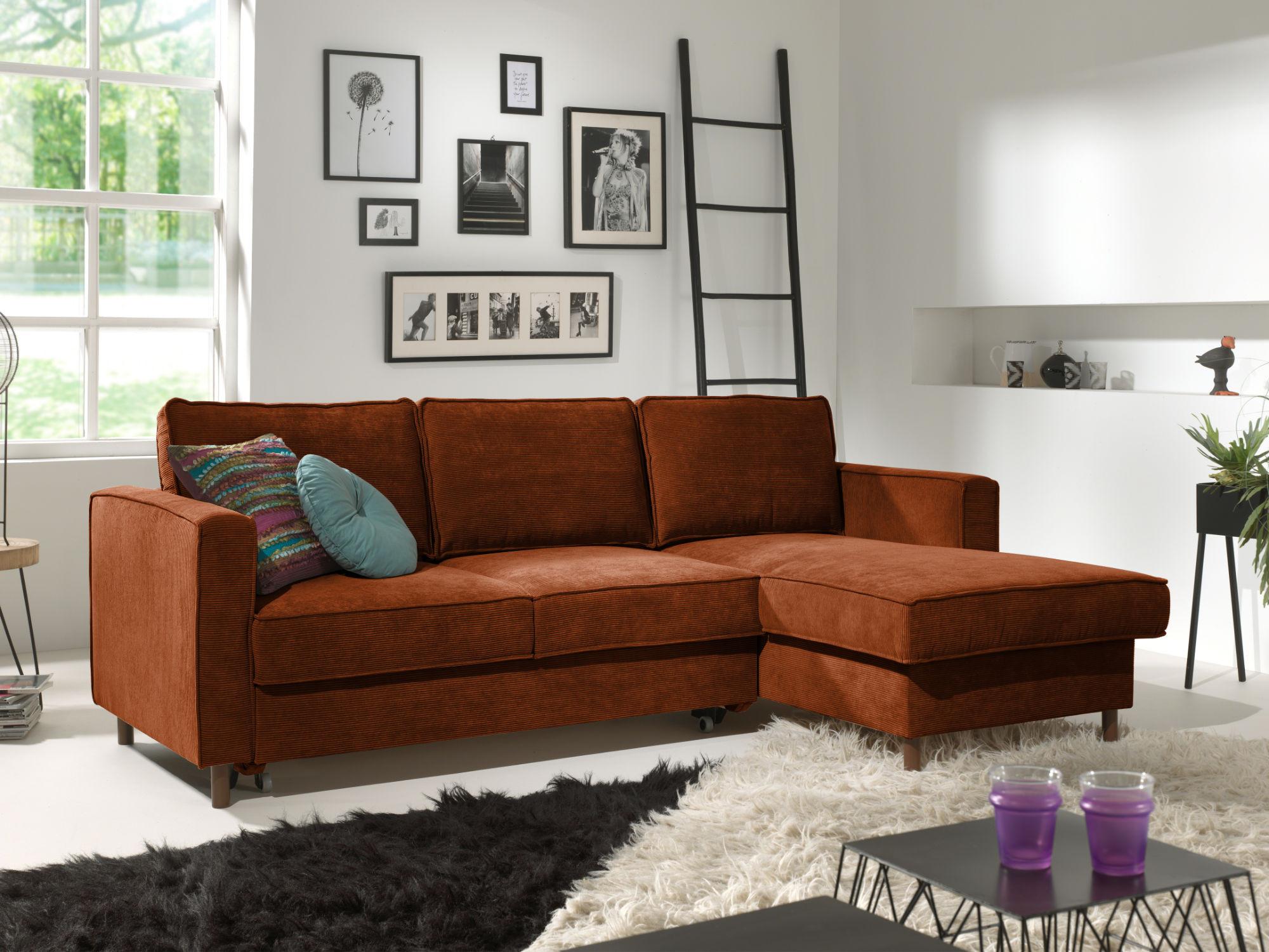 Jake - canapé d'angle droit - convertible avec coffre - 4 places - en velours côtelé