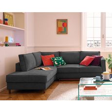 Jake - canapé d'angle gauche 5 places convertible en tissu velours relief