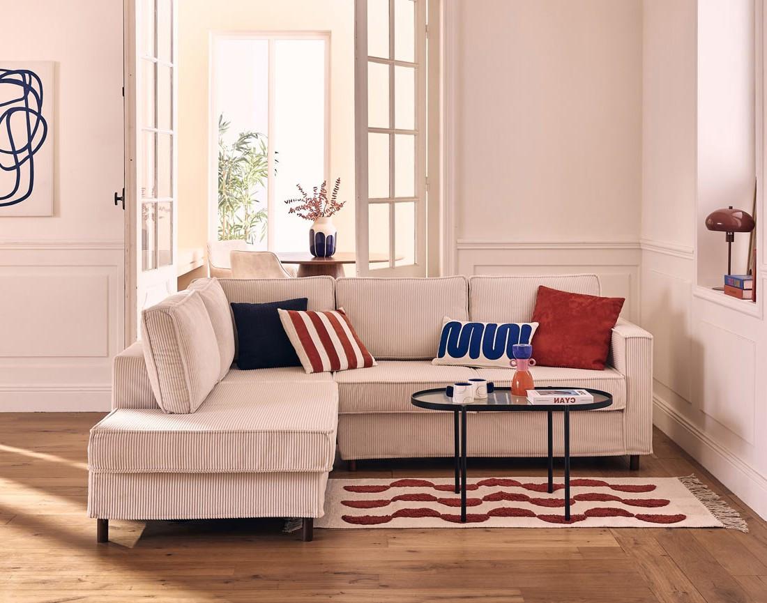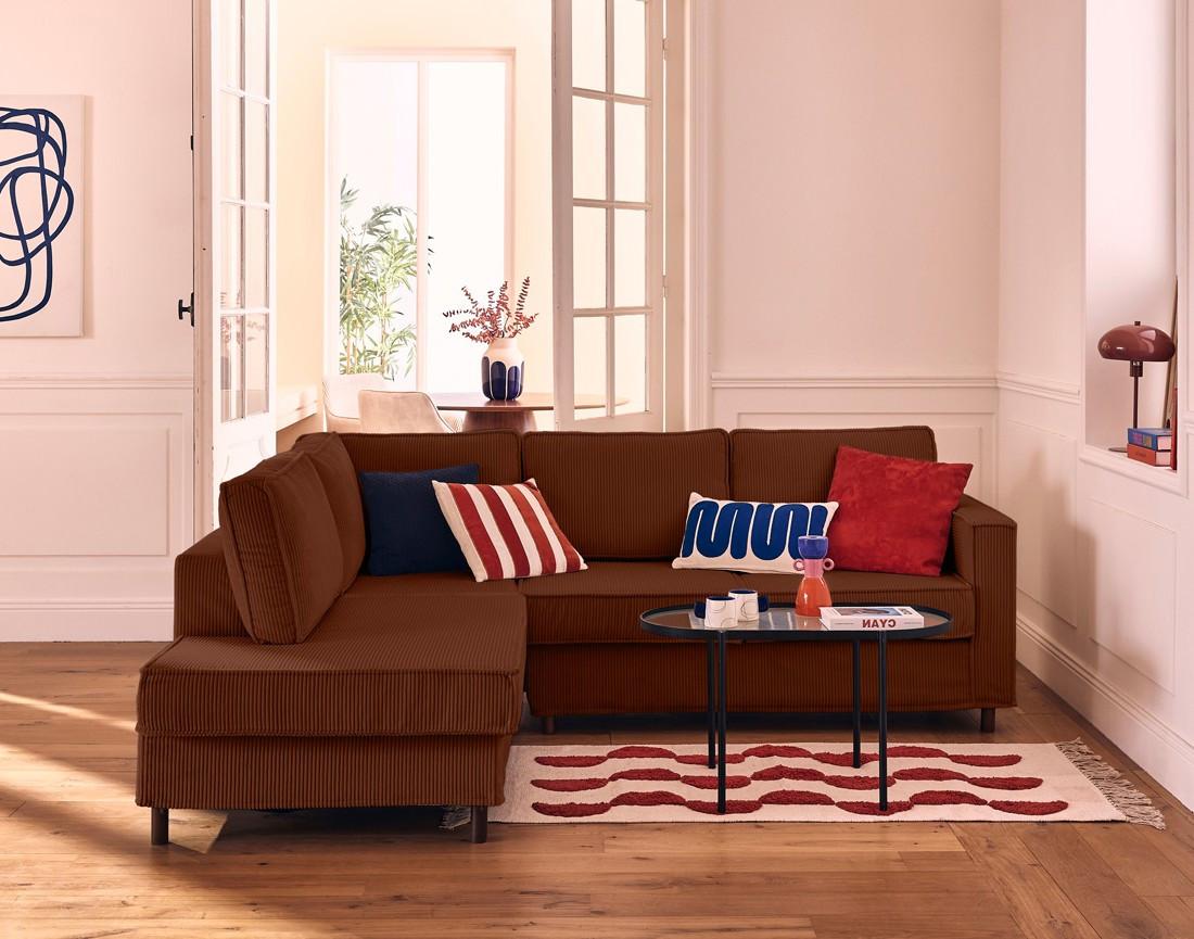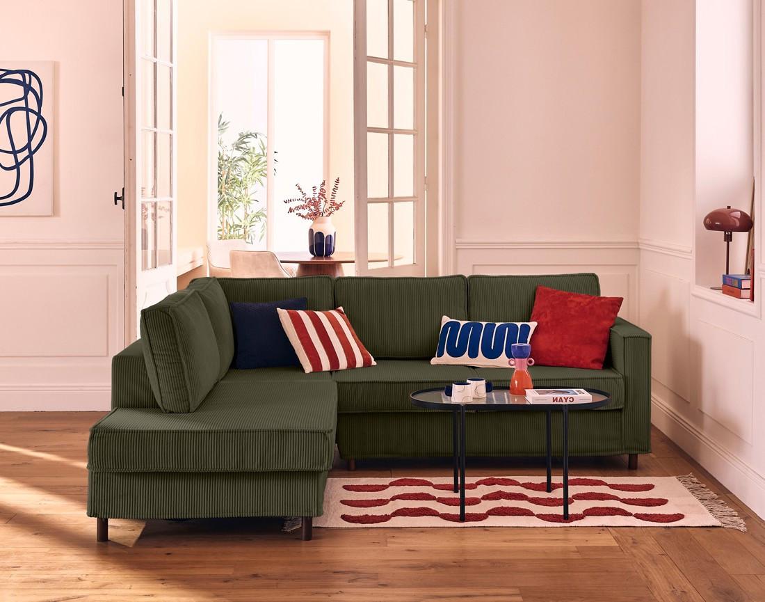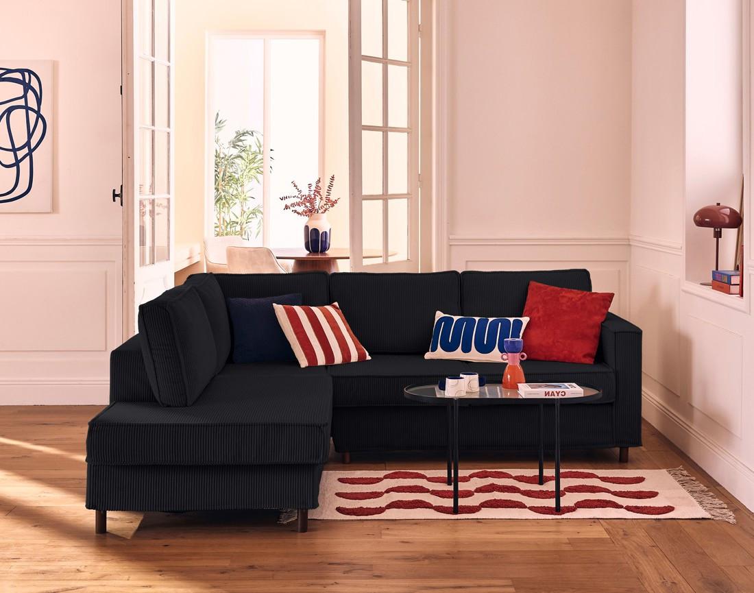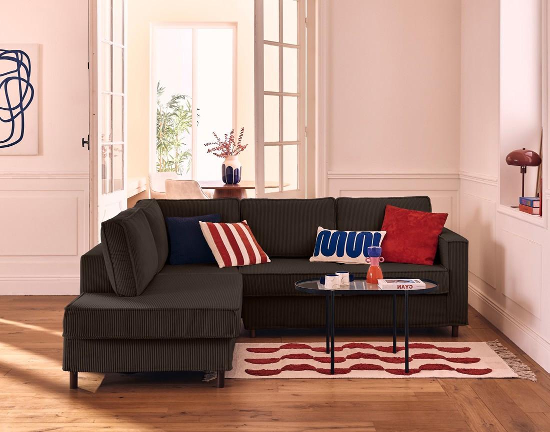 Jake - canapé déhoussable d'angle gauche 5 places en velours côtelé