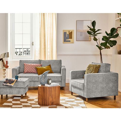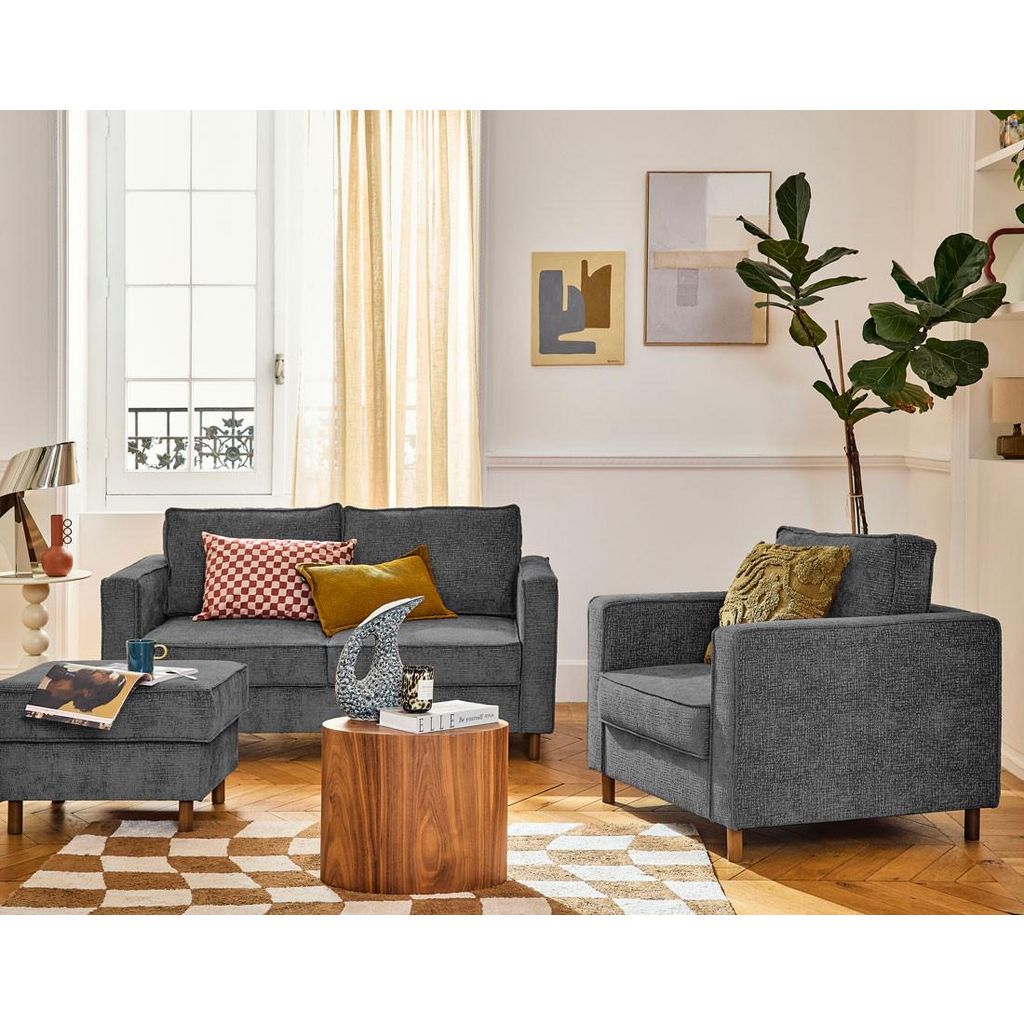 - Présentation de la collection : Avec son revêtement en tissu velours relief alliant douceur et modernité, la collection Jake vous invite à la détente. Cette collection composée de plusieurs canapés, d'un fauteuil et d'un pouf, d'origine européenne est dotée de pieds hauts en bois foncé.