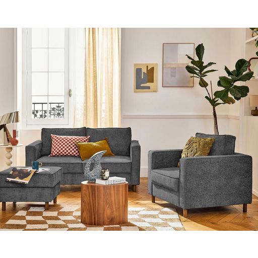 Ajoutez une touche d'élégance à votre salon avec le canapé Jake 2 places. Ce modèle compact, idéal pour les espaces réduits, combine praticité et design raffiné. Fabriqué avec des matériaux de haute qualité, il garantit une assise durable qui ne s'affaisse pas avec le temps. Son revêtement en tissu velours relief, doux au toucher, confère une note moderne et sophistiquée à votre intérieur, tout en offrant un confort optimal.