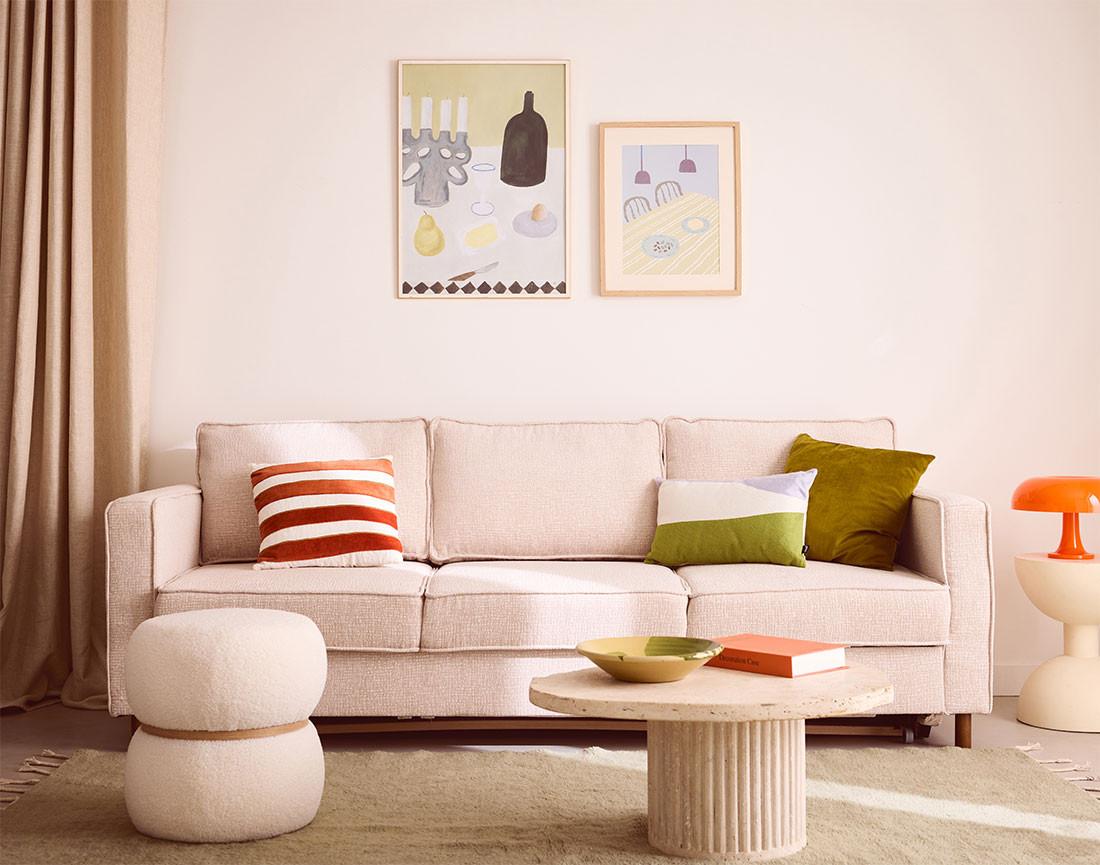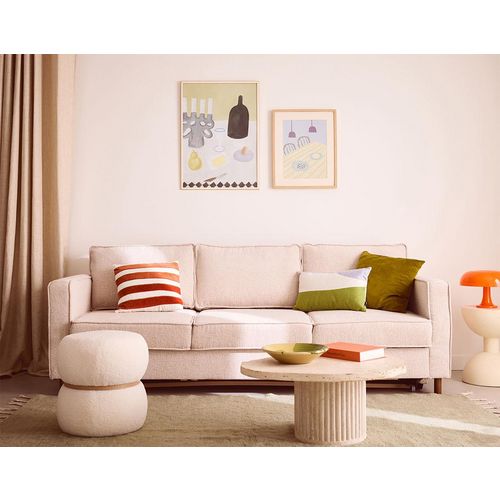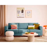 Le canapé Jake est disponible dans une palette de coloris variée, incluant bleu, vert, gris clair, beige, gris anthracite et terracotta. Ces teintes s'harmonisent avec différents styles de décoration, qu'ils soient modernes, scandinaves ou altiques. Les pieds en bois foncé ajoutent une note chaleureuse et élégante, offrant à ce canapé une allure à la fois sobre et chic. Idéal pour créer un espace de vie accueillant, il deviendra rapidement un élément clé de votre salon.