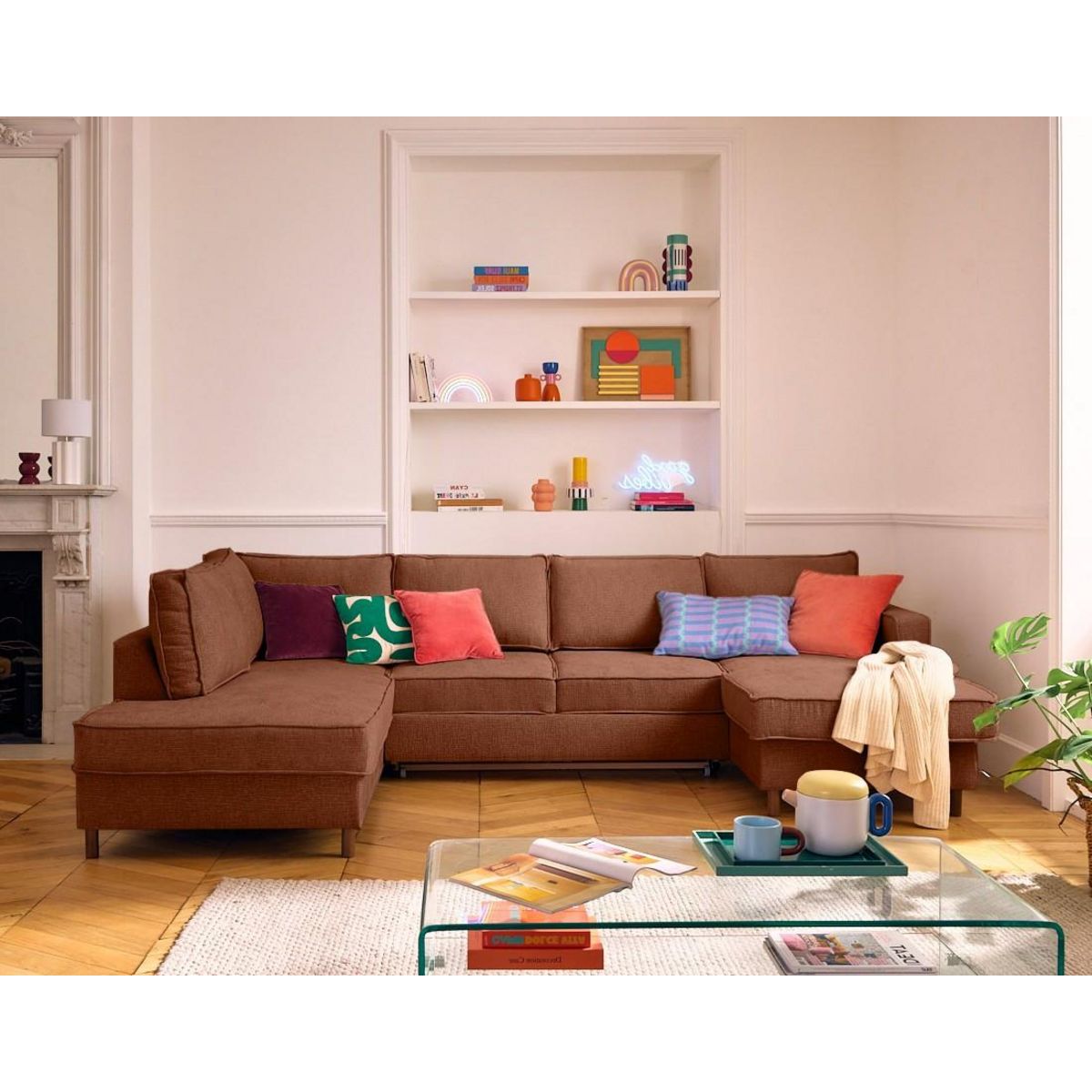 Jake - canapé panoramique d'angle gauche 7 places convertible avec coffre en tissu velours relief