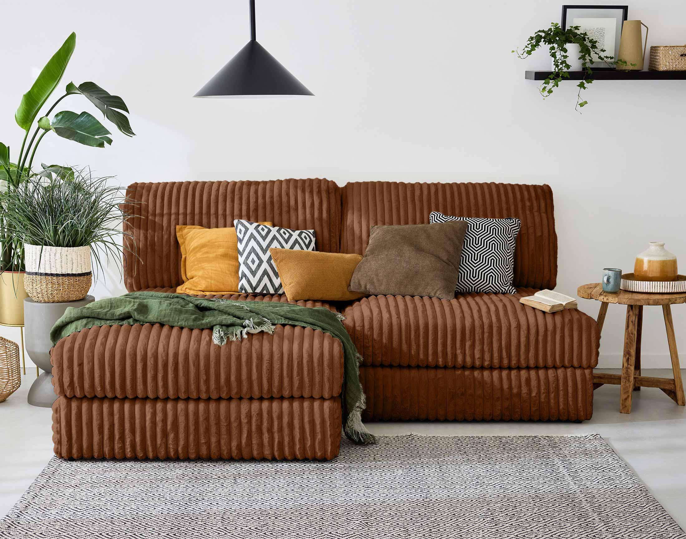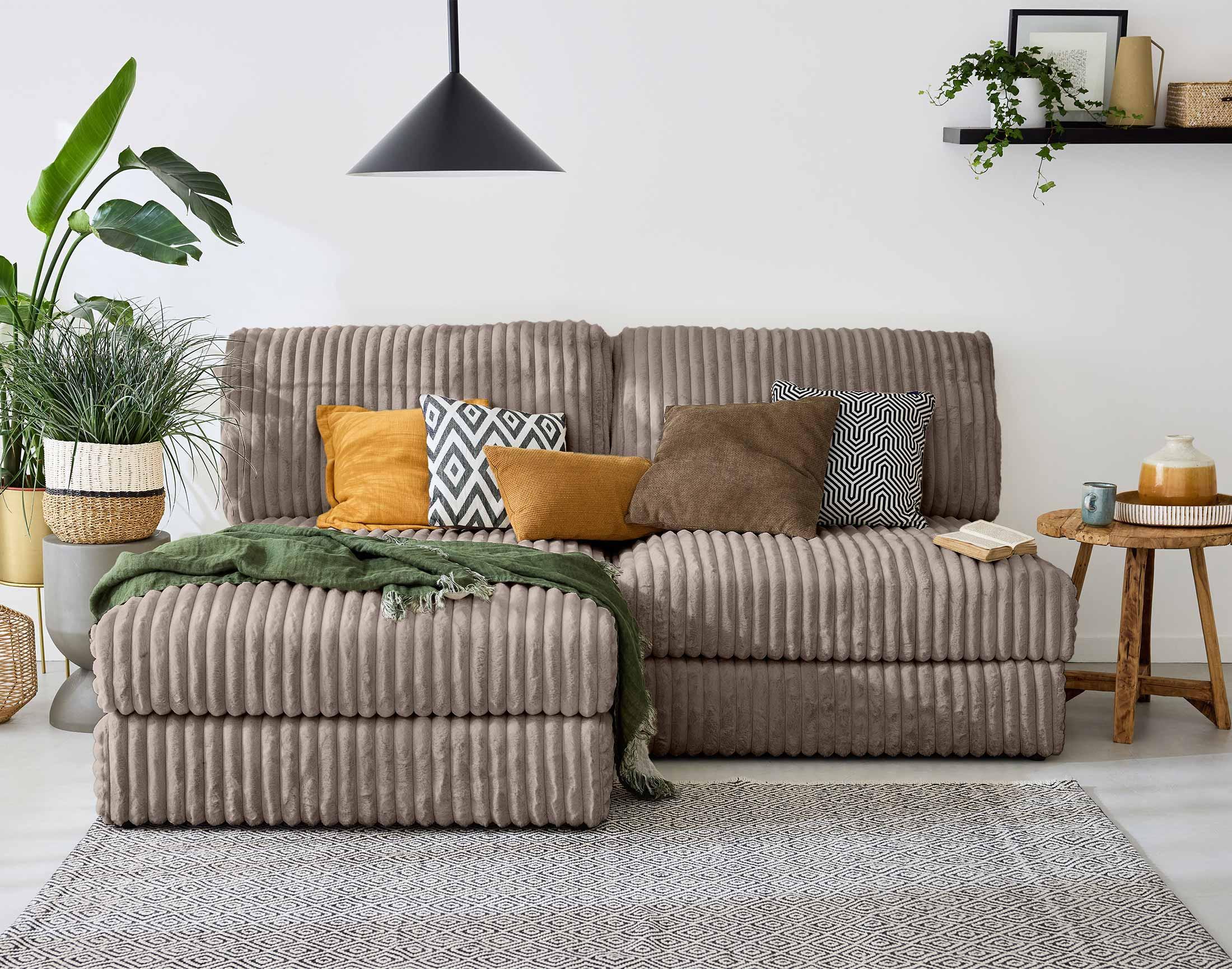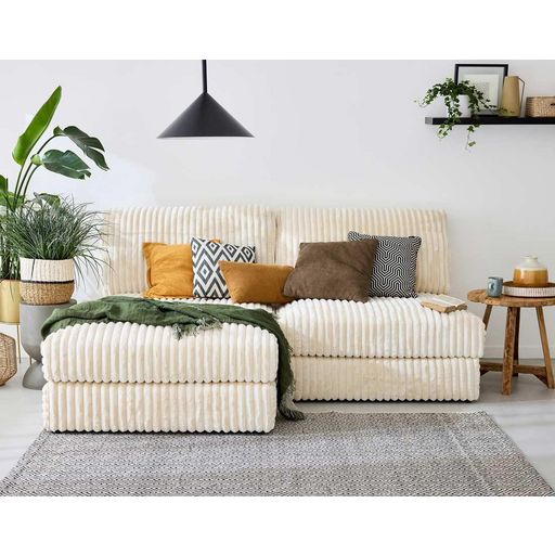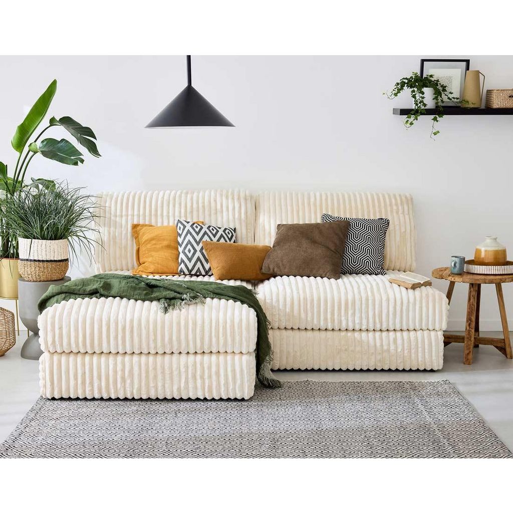 Son point fort : apporter de la chaleur dans les pièces de vie. La fausse fourrure côtelée est en effet un textile très doux qui invite à la détente. C'est aussi un tissu élégant qui apportera une touche sophistiquée. Avec les modules Jasper, vous allez adorer vous installer dans votre canapé pour regarder un bon film ou pour lire sans voir les heures passer.