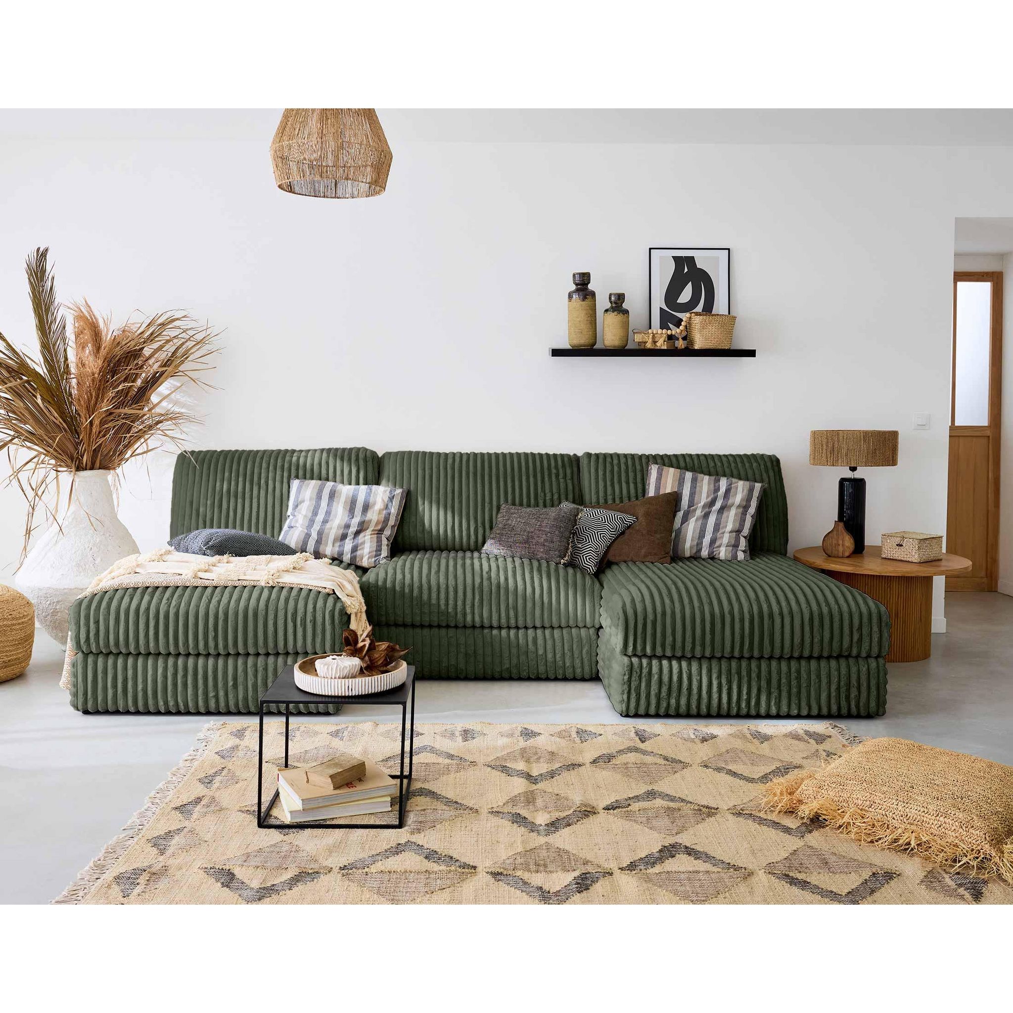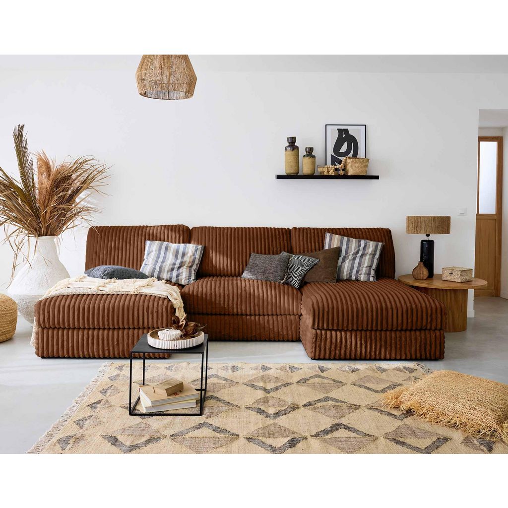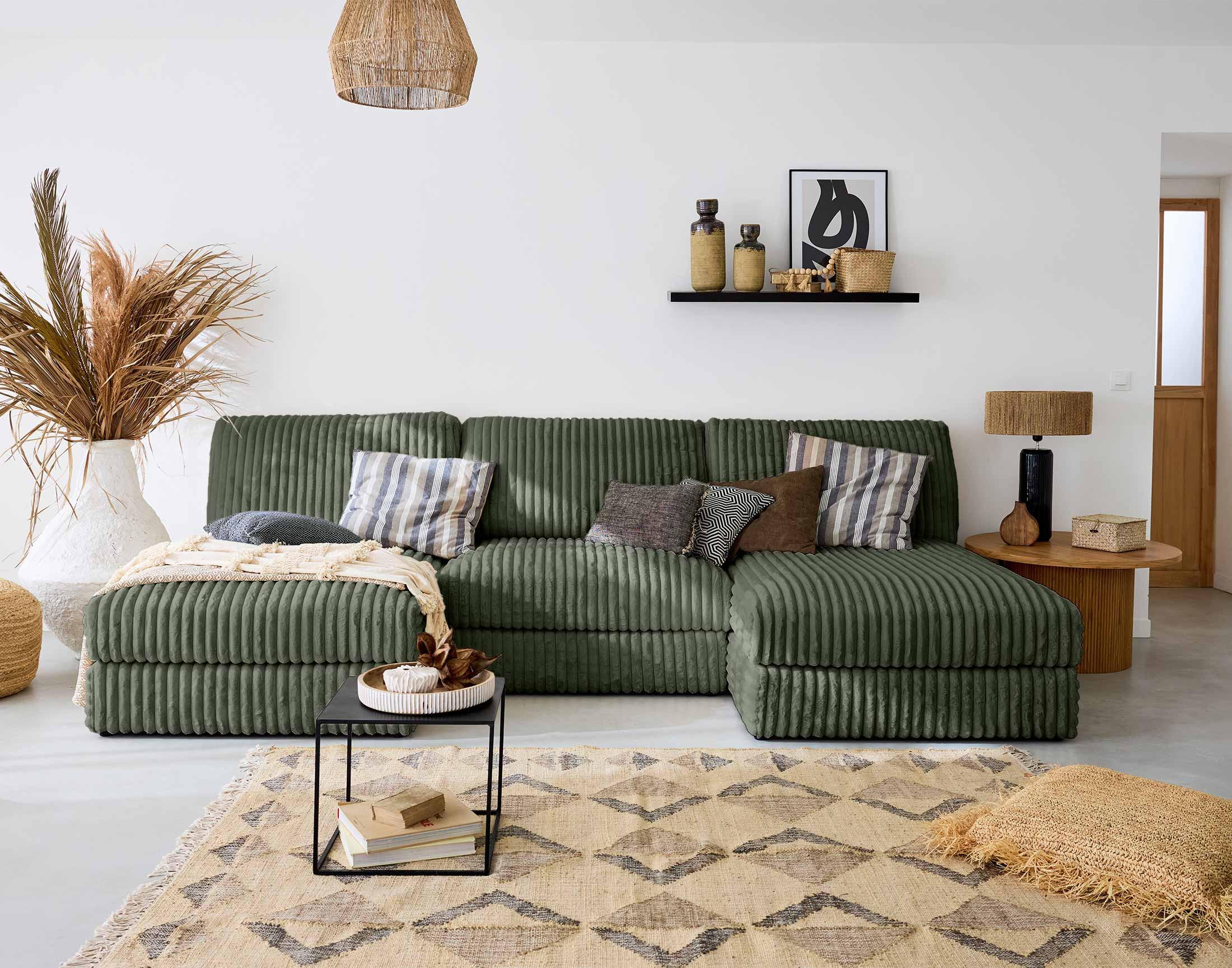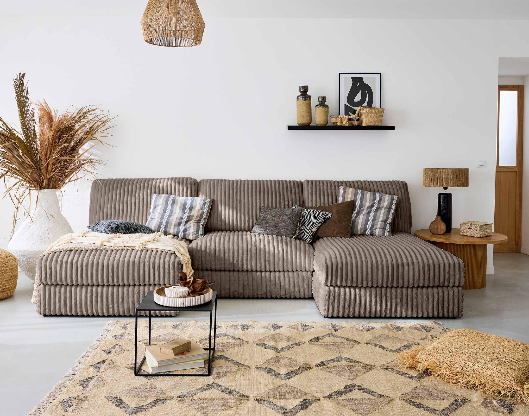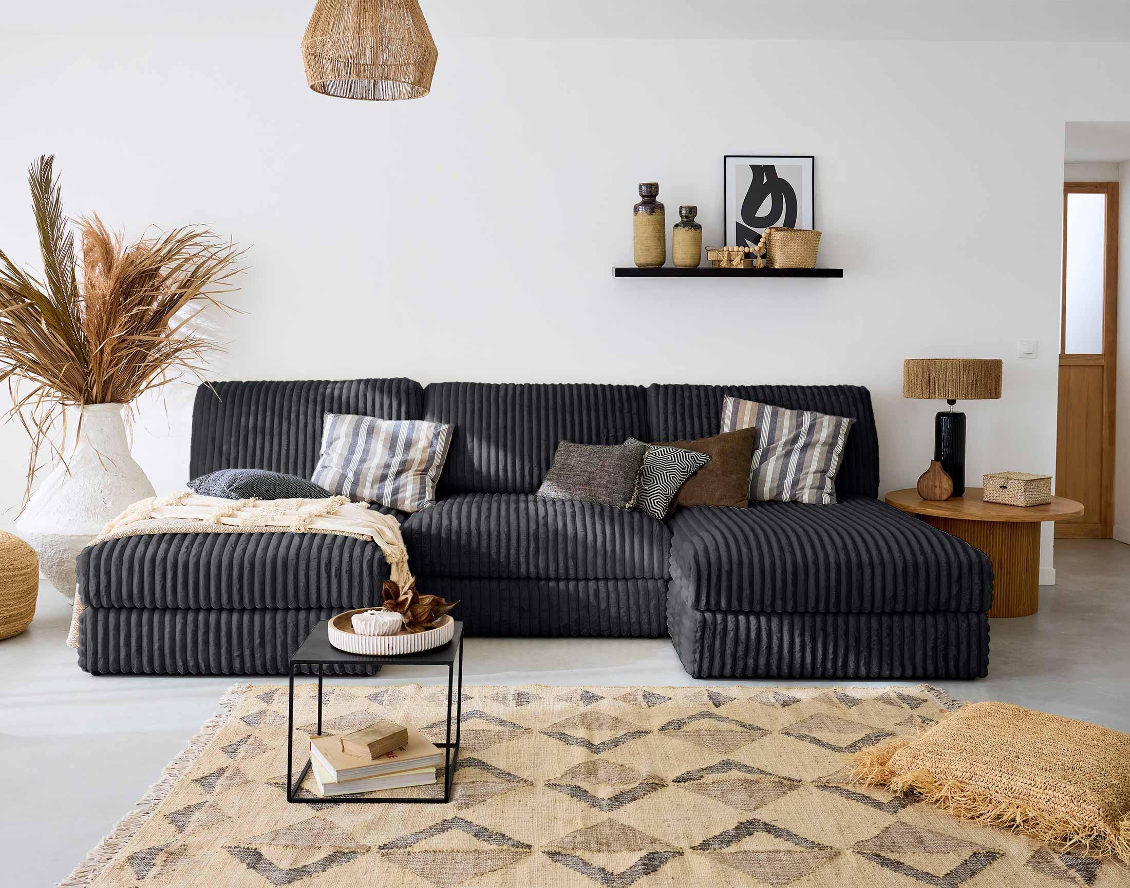 Il se distingue également par ses finitions particulièrement élégantes. Avec son tissu en fausse fourrure côtelée très doux, vous avez l'assurance d'apporter du style et un effet très cosy à votre salon. Complété par une table basse (en marbre, en verre ou en bois, par exemple) et quelques éléments de déco, il ne vous en faudra pas plus pour créer la pièce de vie de vos rêves !