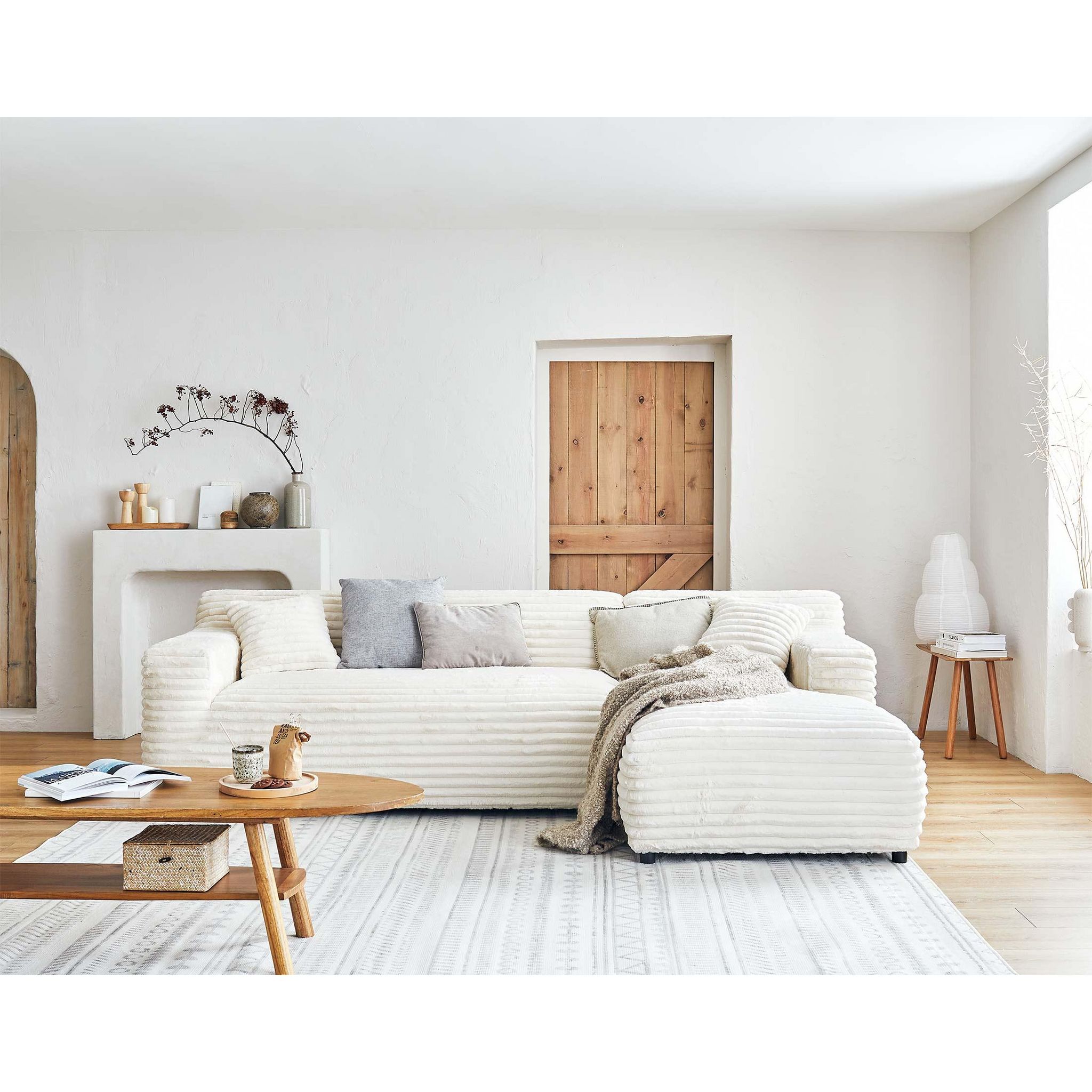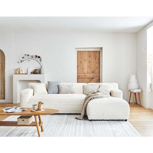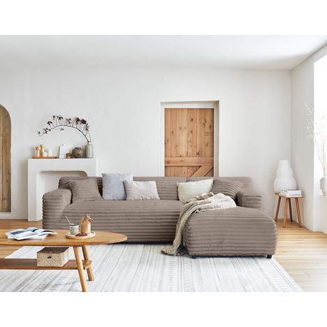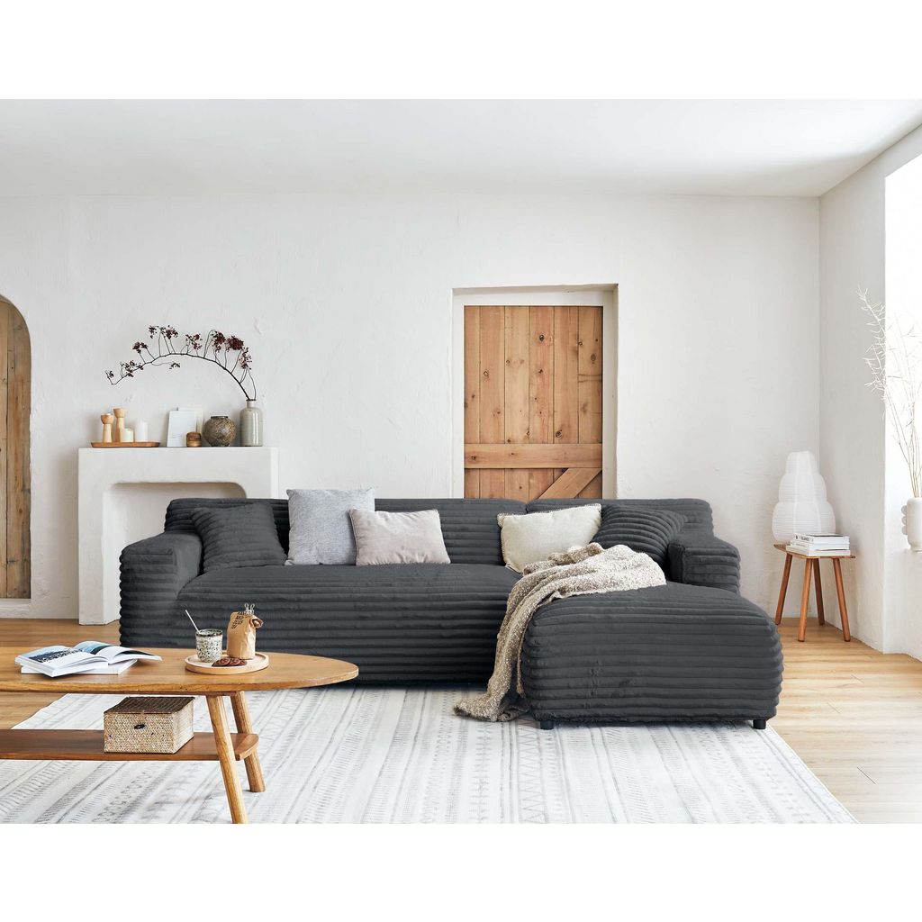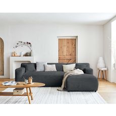 Détendez-vous et profitez d'un agréable moment de douceur avec le canapé d'angle Laponie 4 places. Vous allez apprécier son revêtement en fausse fourrure côtelée aussi doux qu'un plaid. Outre son tissu, Laponie se démarque également par ses proportions généreuses, son assise rebondie et ses lignes épurées. Cocooning, doux et moelleux ce canapé a tout pour plaire.