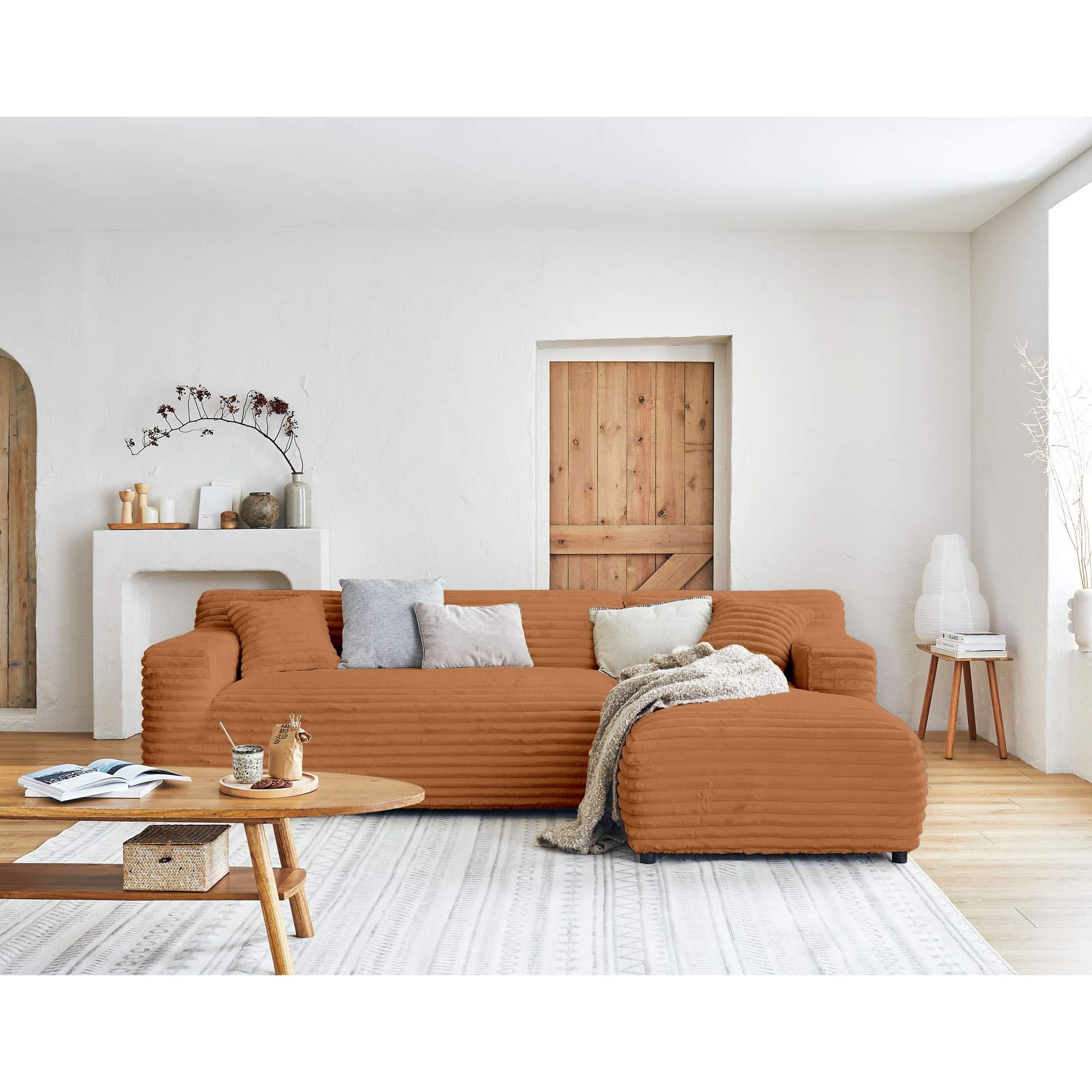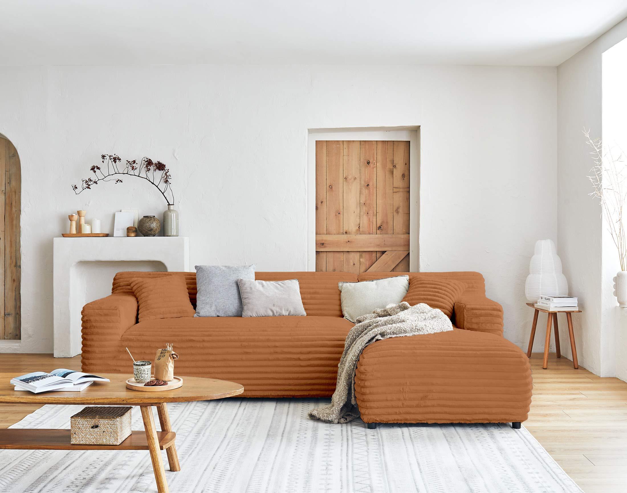 Laponie - canapé d'angle droit - 4 places - en fausse fourrure côtelée