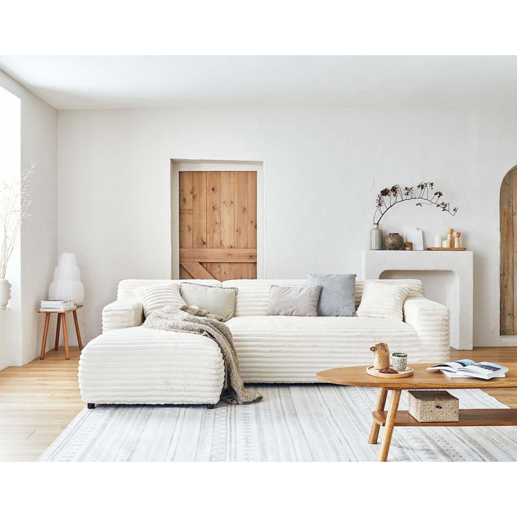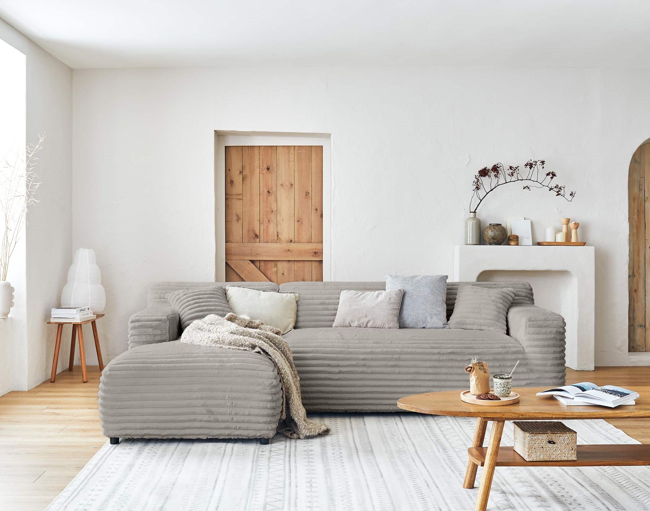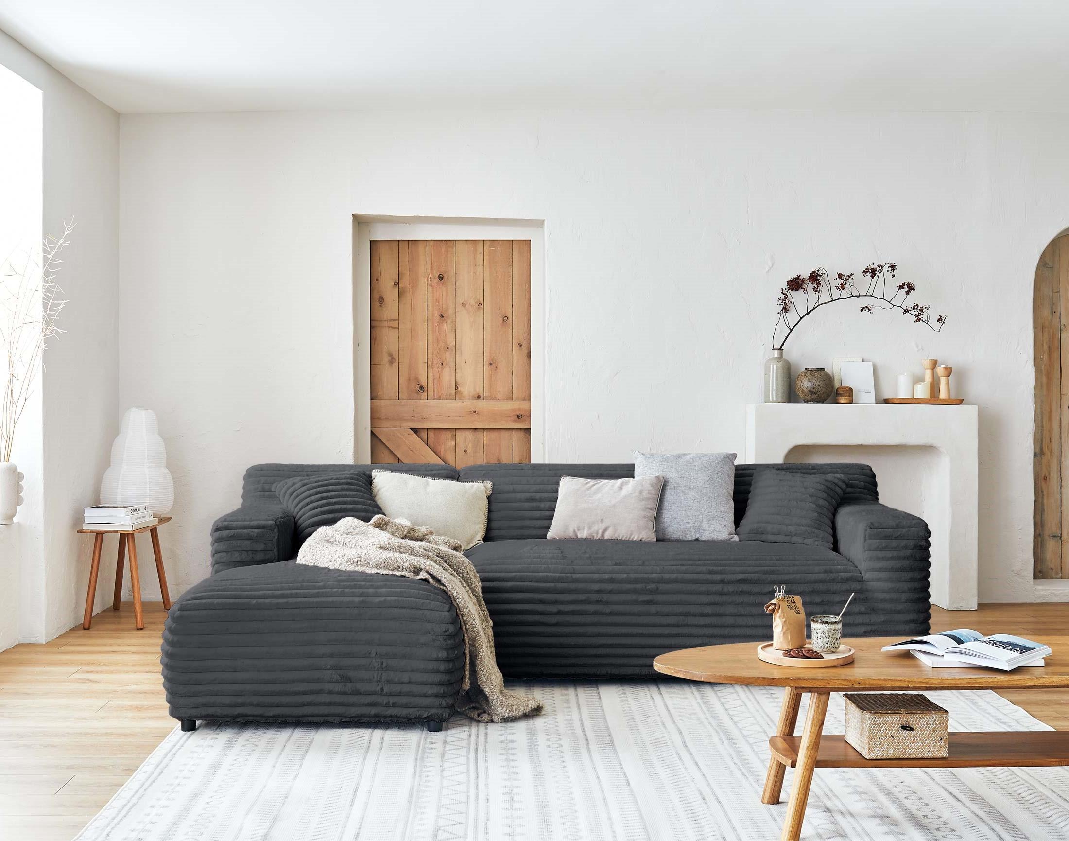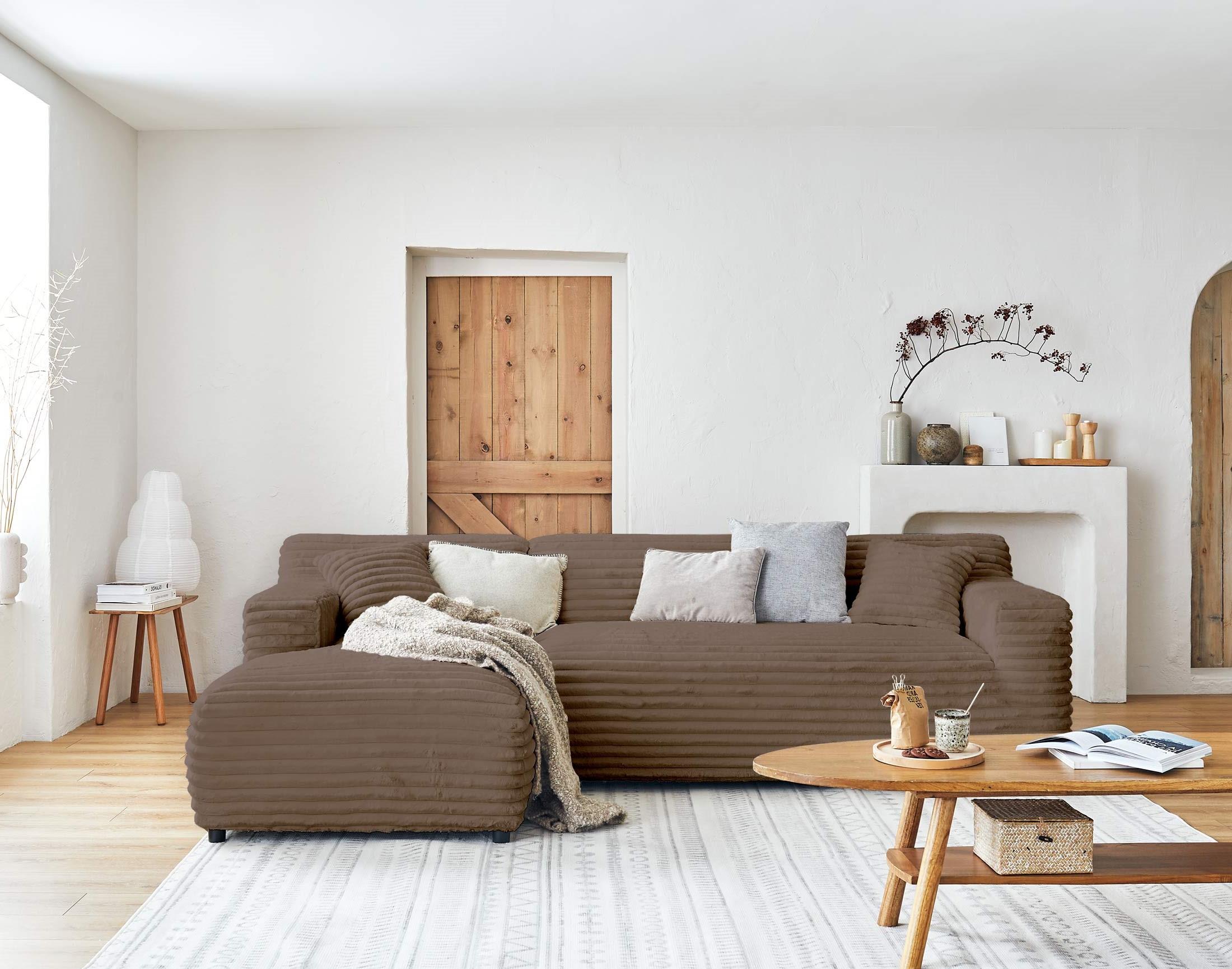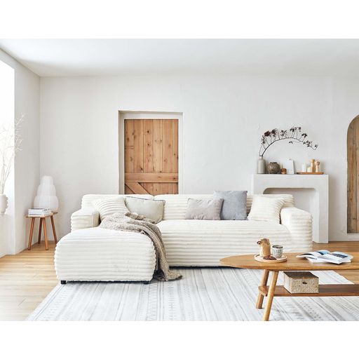 Détendez-vous et profitez d'un agréable moment de douceur avec le canapé d'angle Laponie 4 places. Vous allez apprécier son revêtement en fausse fourrure côtelée aussi doux qu'un plaid. Outre son tissu, Laponie se démarque également par ses proportions généreuses, son assise rebondie et ses lignes épurées. Cocooning, doux et moelleux ce canapé a tout pour plaire.