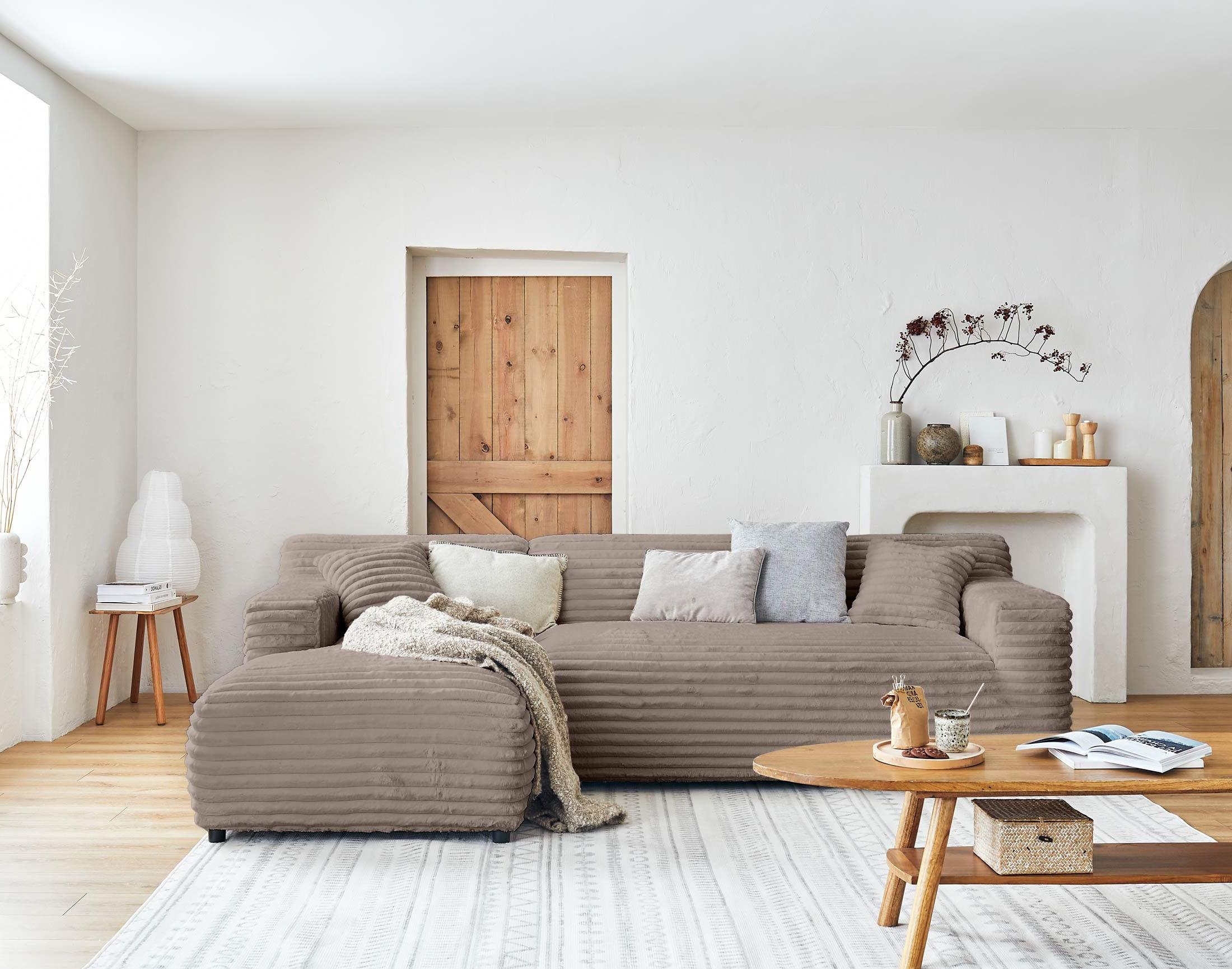 Laponie - canapé d'angle gauche - 4 places - en fausse fourrure côtelée