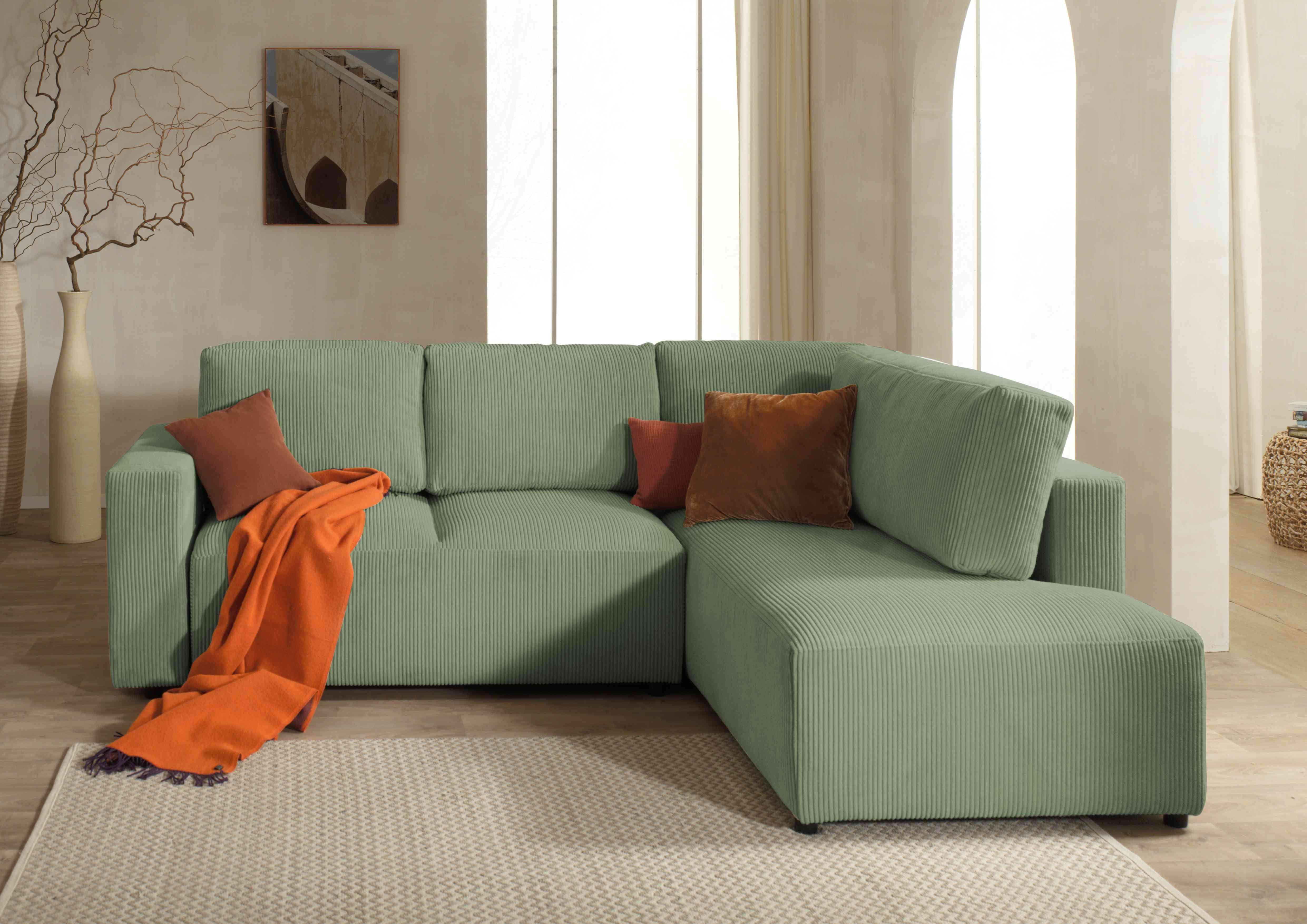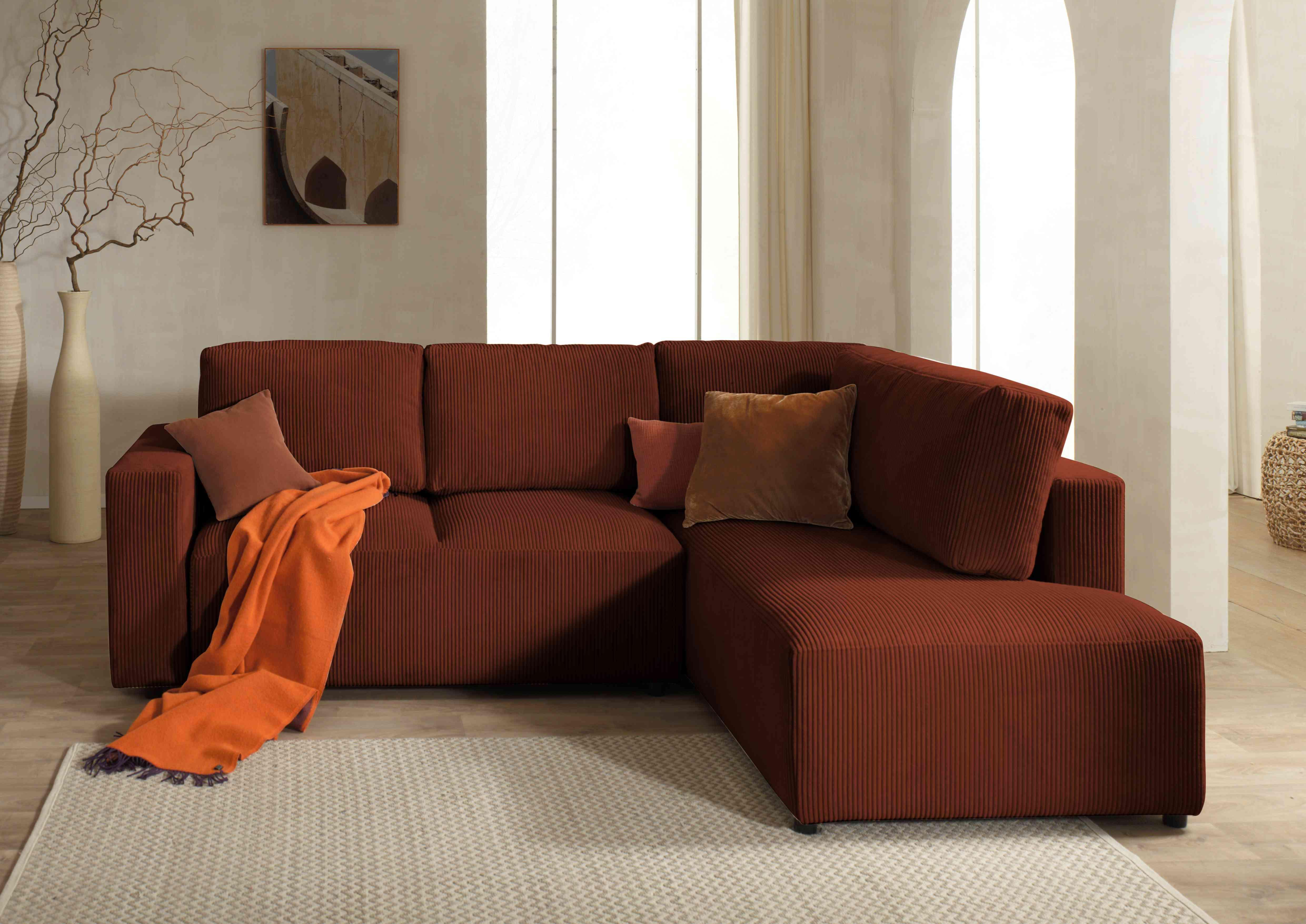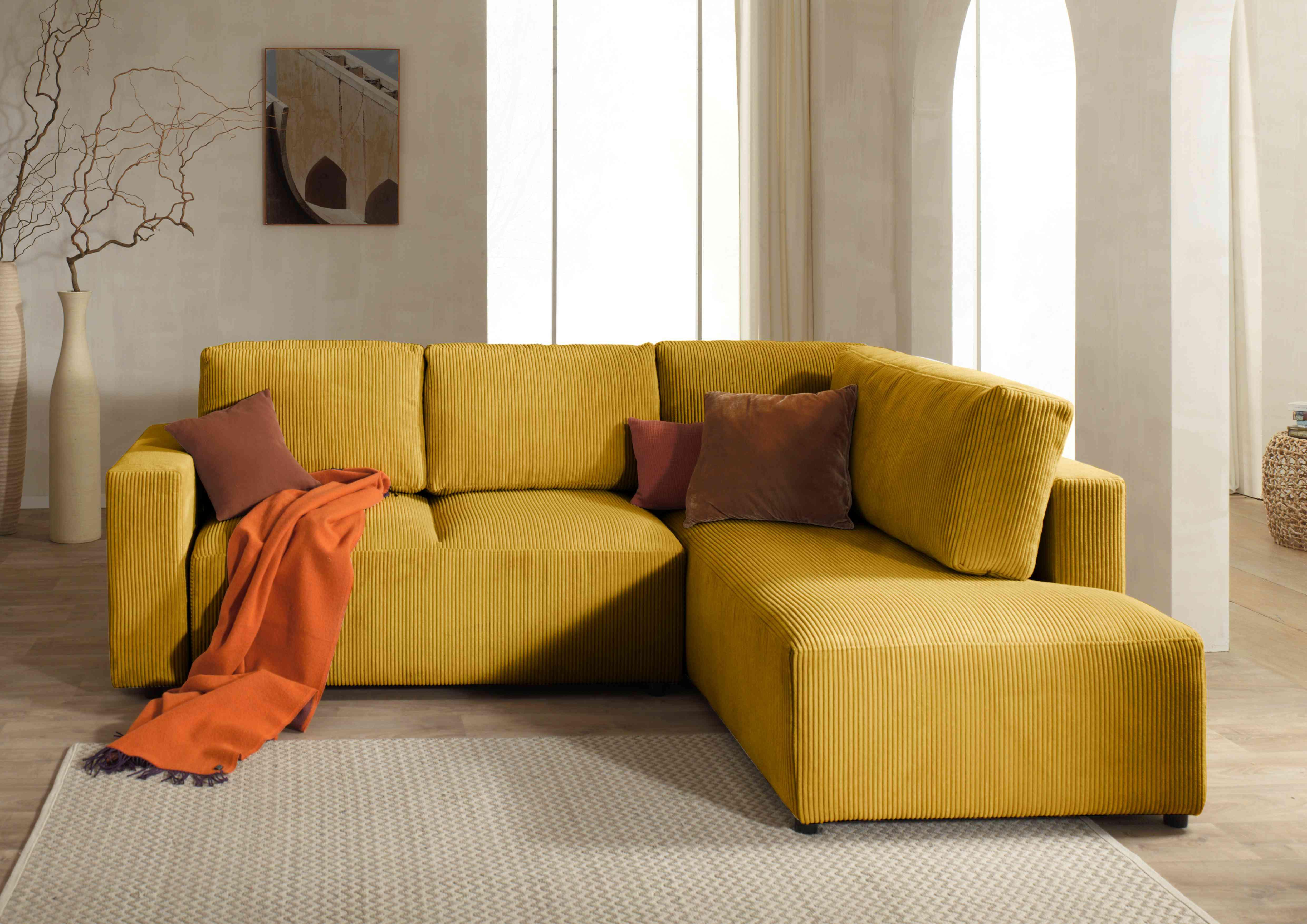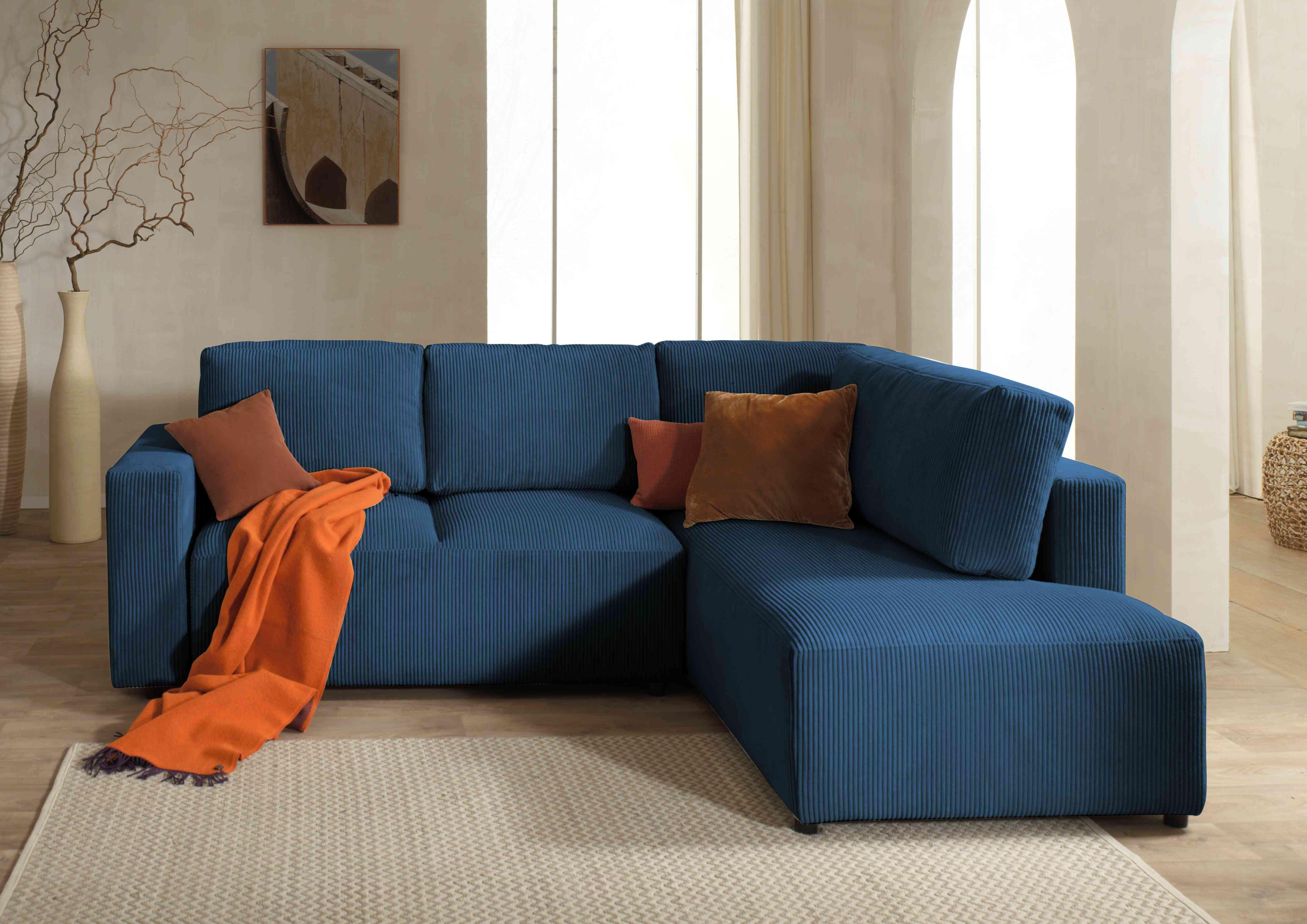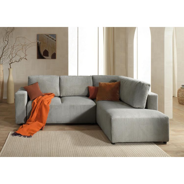 Livy - canapé d'angle convertible - avec coffre - en velours côtelé - 5 places - droit