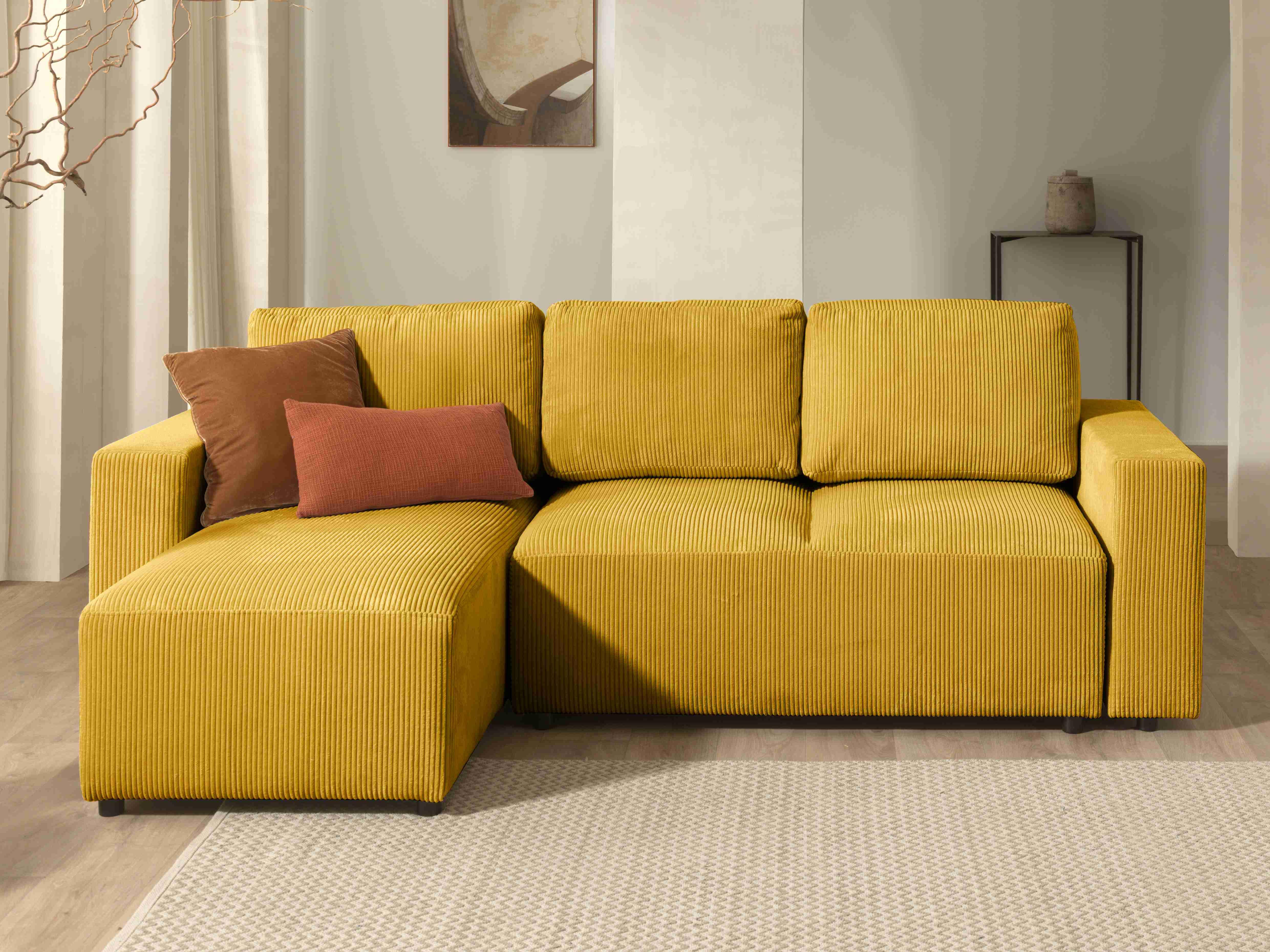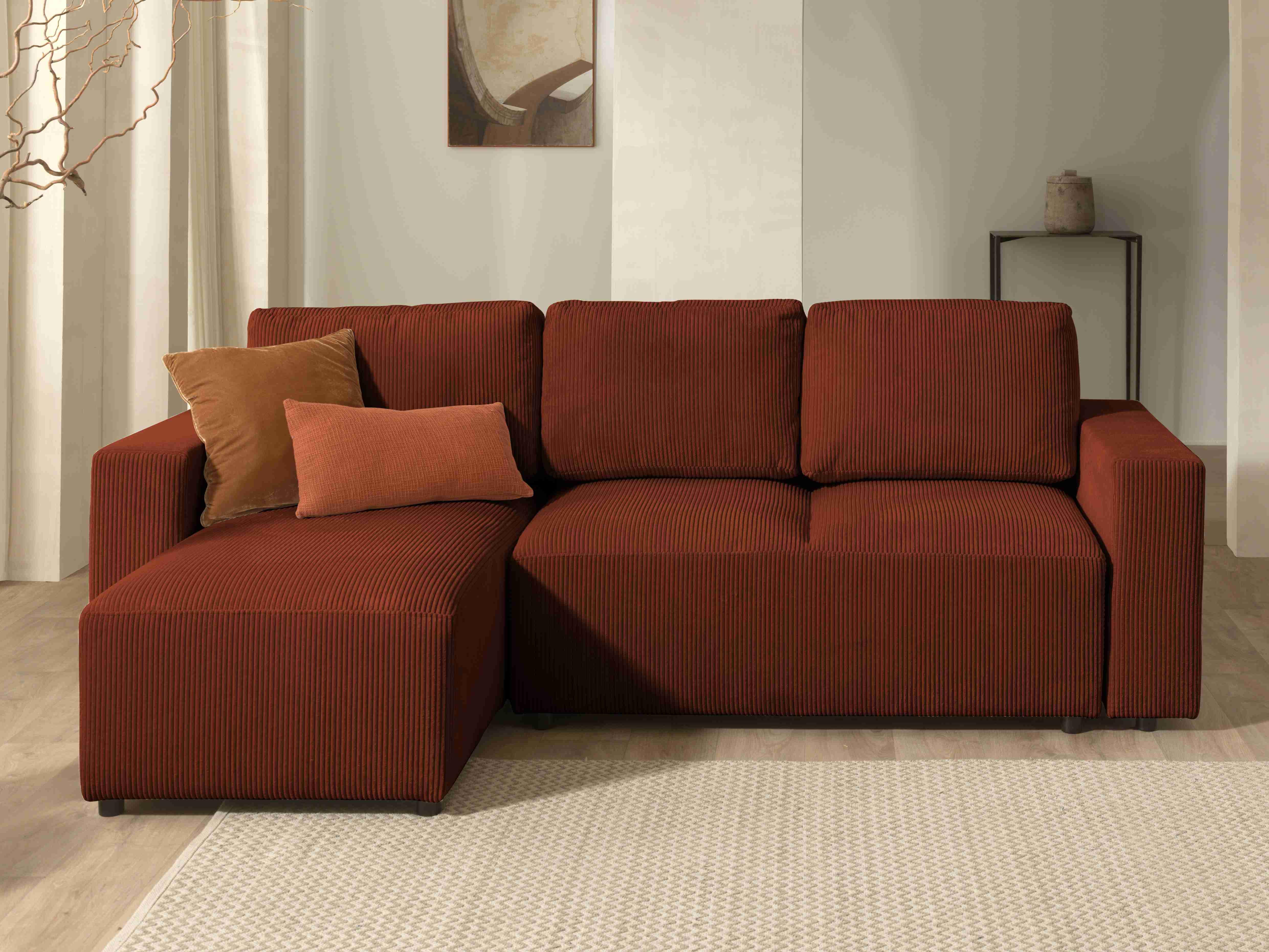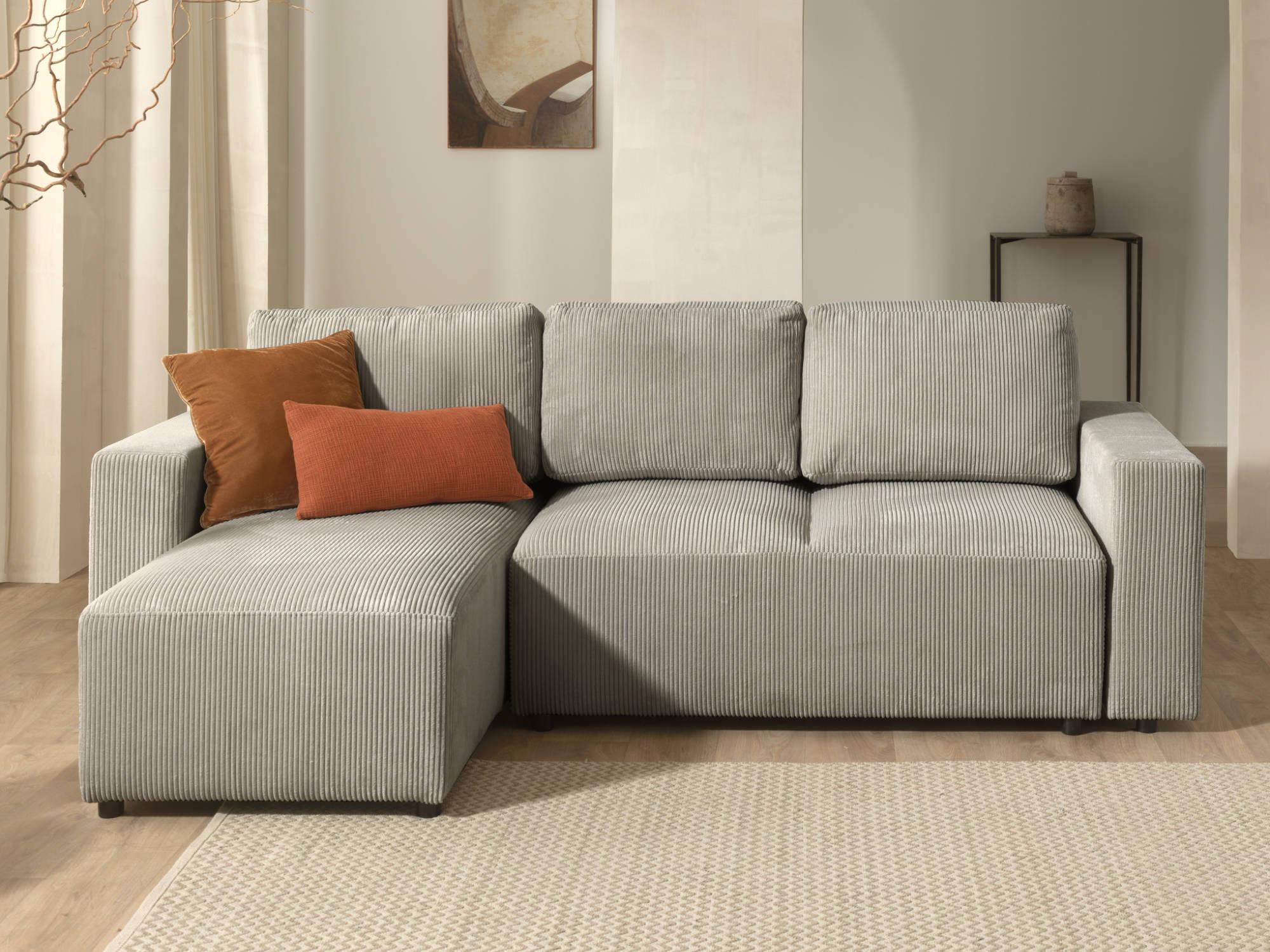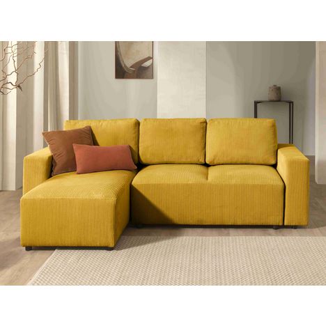 Livy - canapé d'angle convertible et coffre - réversible - en velours côtelé - 4 places