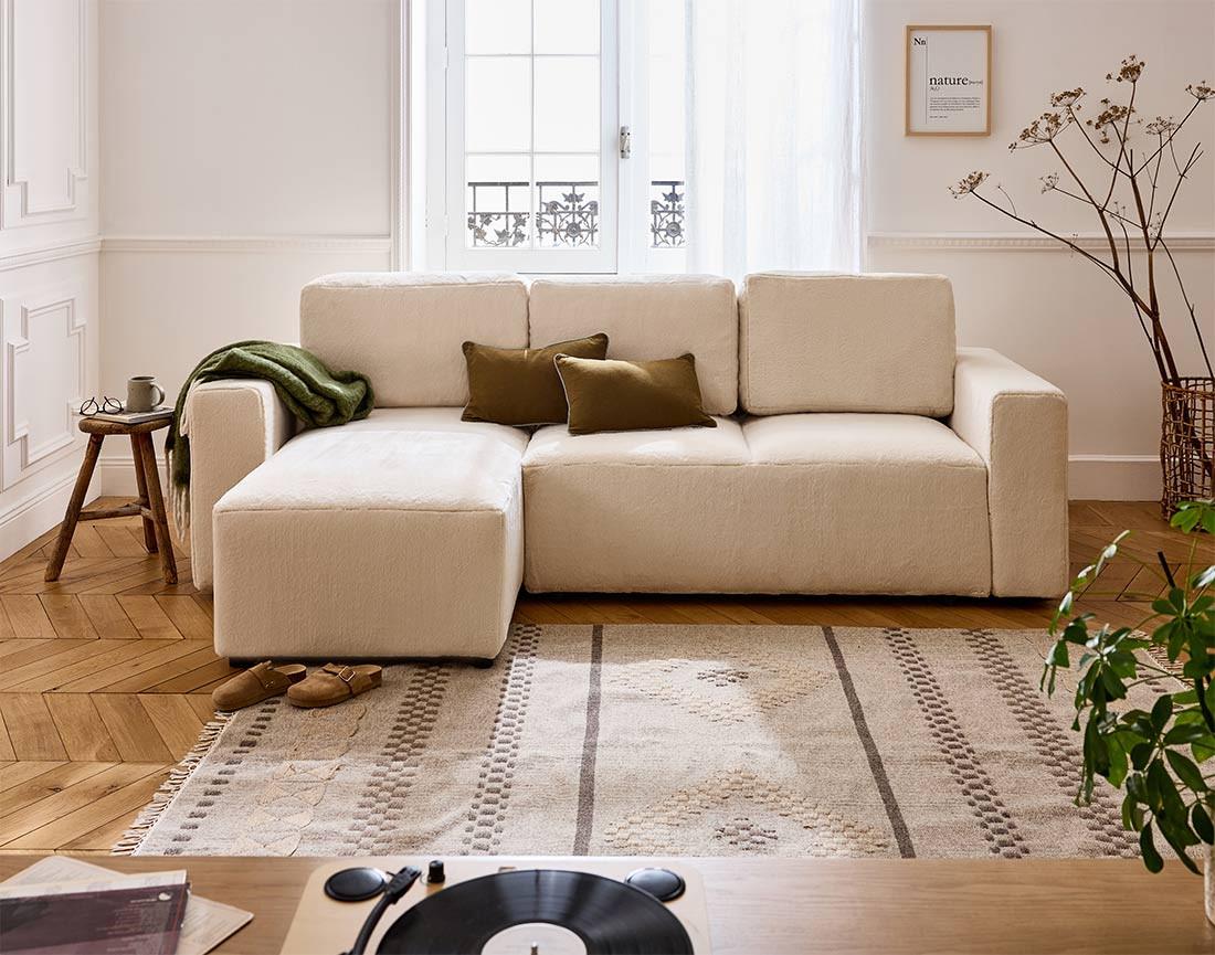 Canapé d'angle Livy : Adoptez un canapé en fausse fourrure hyper tendance