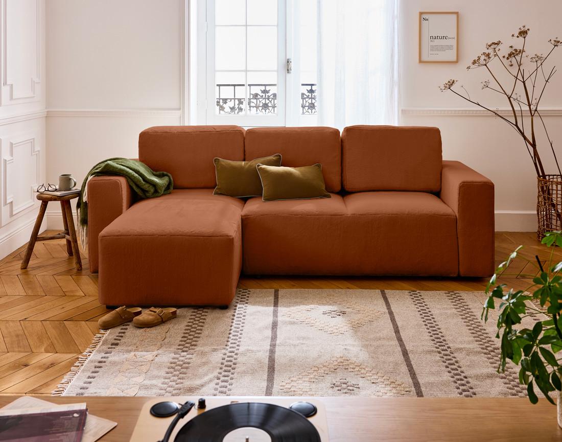 Avec son magnifique revêtement en fausse fourrure, le canapé d'angle réversible 4 places Livy se place au sommet de nos coups de cœur du moment. Ce magnifique textile, tout doux et invitant à souhait, est parfait pour apporter à votre salon une touche cosy très esthétique et tendance. De quoi parer votre intérieur d'un meuble absolument irrésistible, qui saura attirer à lui tous les regards ! Ce joli canapé tendance s'accordera parfaitement avec un fauteuil en tissu bouclette ou en fausse fourrure, pour renforcer l'allure cocooning de votre espace de vie. N'hésitez pas à personnaliser l'allure de votre canapé Livy, en le choisissant dans l'un des 4 coloris disponibles. Choisissez-le en beige, rouille, bleu ou vert, selon vos préférences et le style désiré !