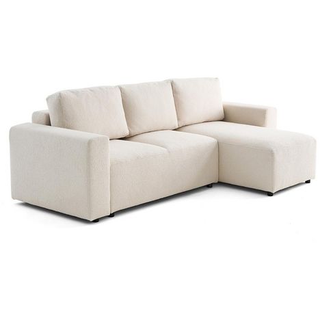 Livy - canapé d'angle réversible 4 places convertible avec coffre en tissu bouclette