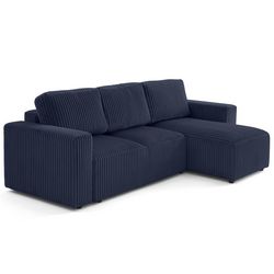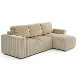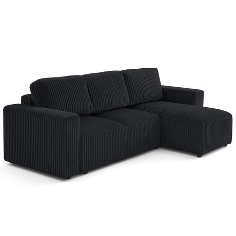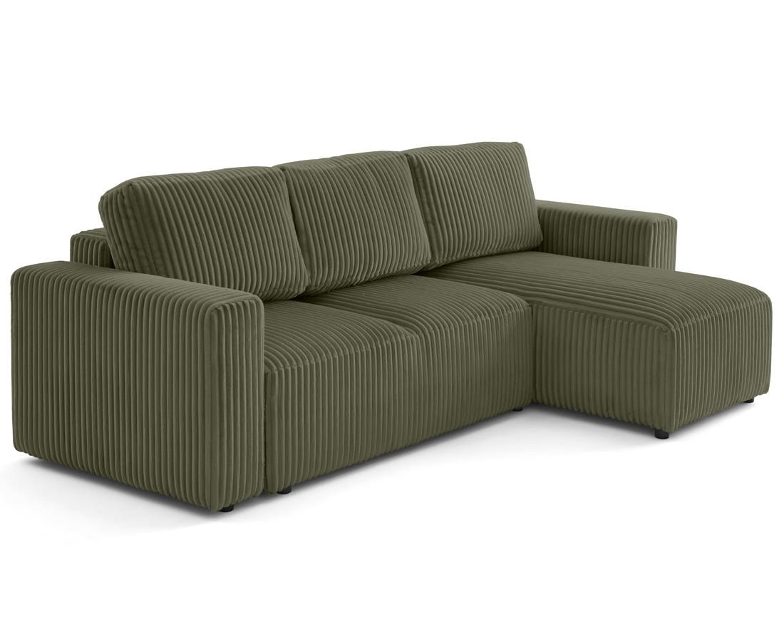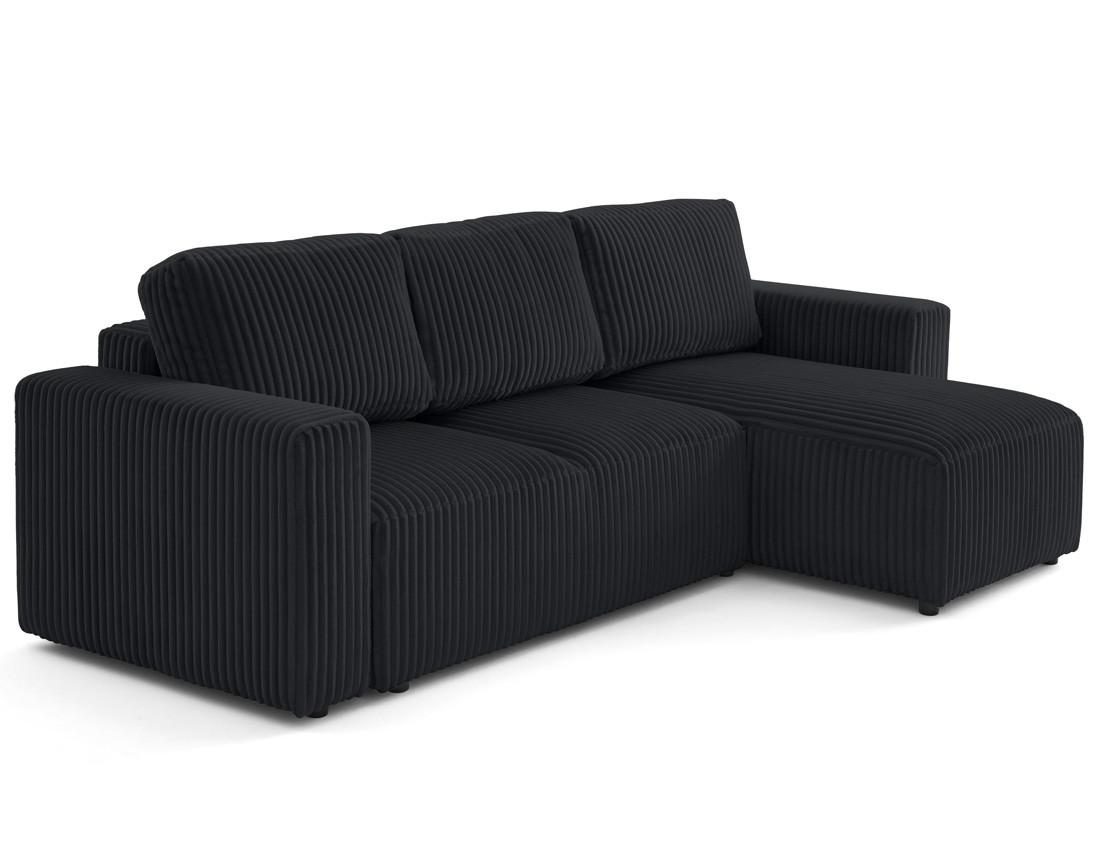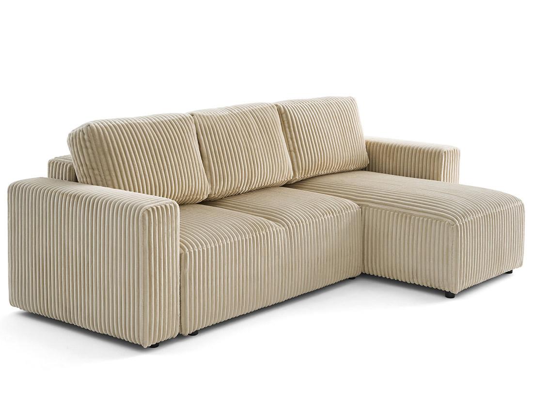 Livy - canapé d'angle réversible 4 places convertible avec coffre en velours côtelé grosses côtes