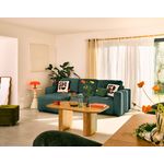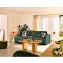 - Détail des matières : Assise et dossier : Mousse polyuréthane 30kg/m3 – Ressorts plats – Structure : Bois massif et panneaux de particules – Revêtement en velours texturé 100% polyester – Pieds en plastique