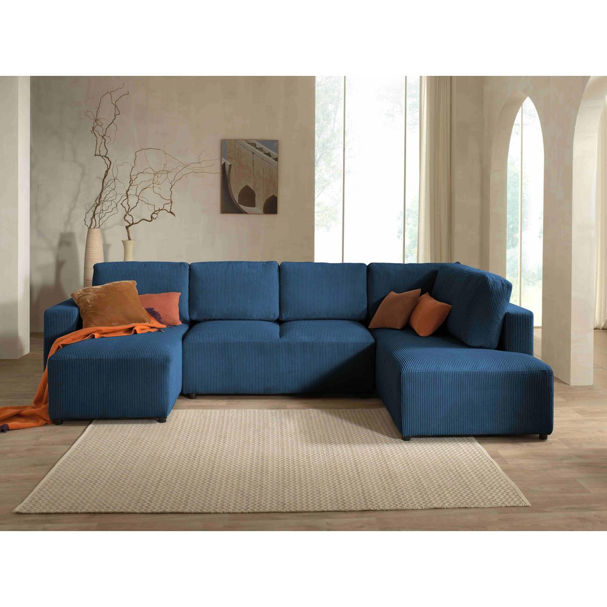Livy - canapé panoramique convertible - avec coffre - en velours côtelé - 7 places - droit