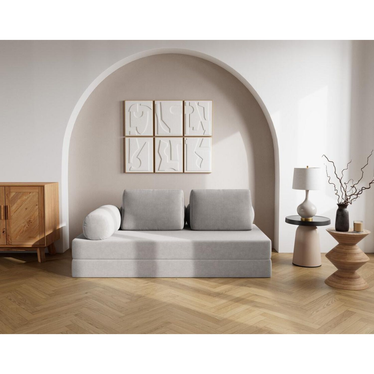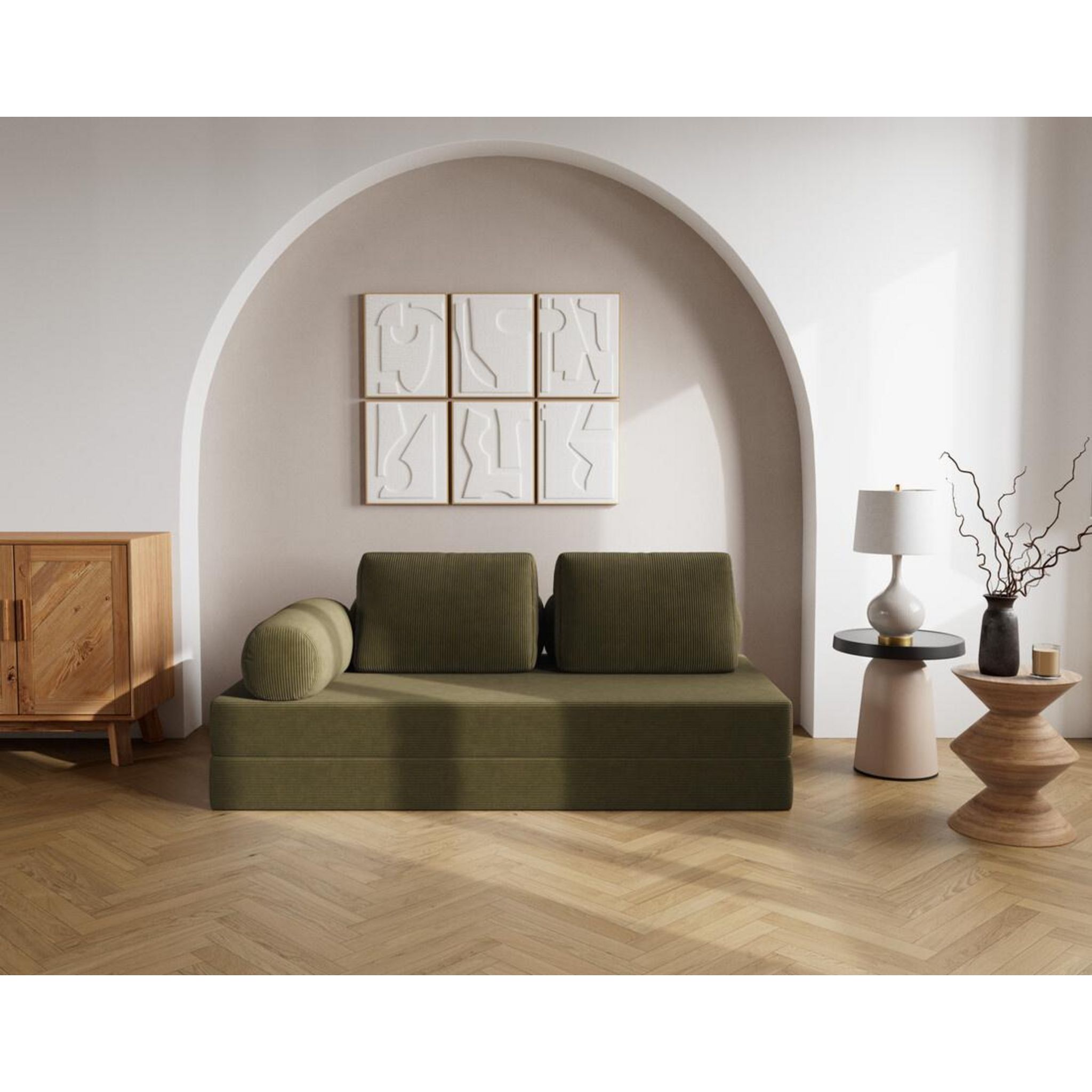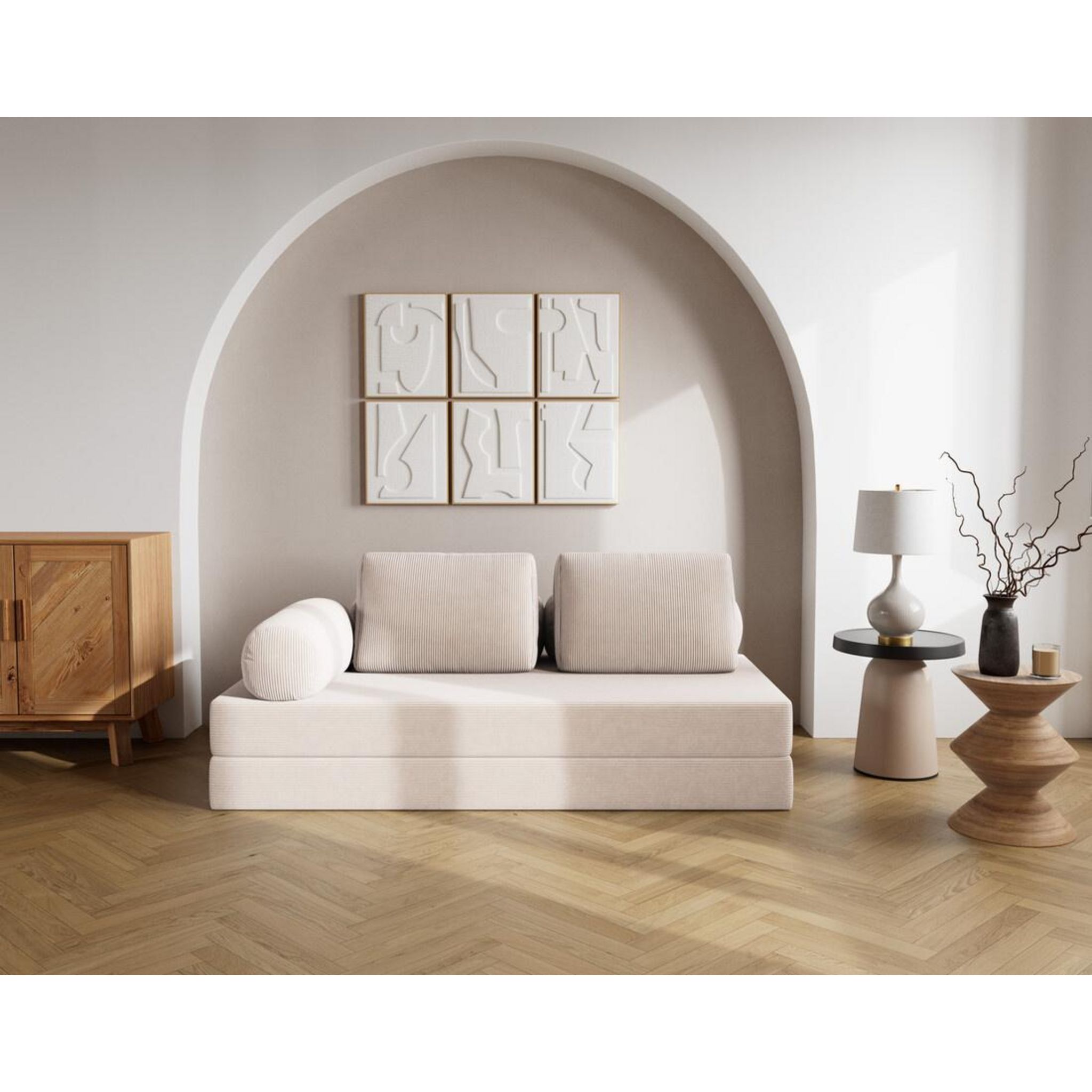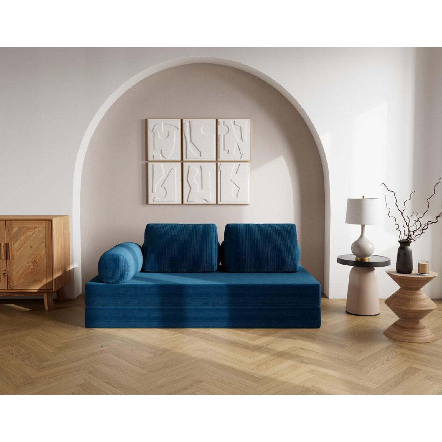 Conçu pour suivre votre rythme, Lonny se plie, ou plutôt se déplie, à toutes les situations. En quelques gestes, il se transforme en un lit d'appoint confortable, idéal pour accueillir un invité surprise. Ses multiples coussins de dossier sont repositionnables à volonté, vous permettant de moduler votre confort selon vos envies : lecture, repos, série ou sieste express. Véritable caméléon du salon, Lonny allie modularité, confort et style sans jamais faire de compromis.