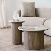 Lysa - table basse plateau effet marbre et pieds effets bois - 80 cm