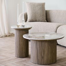 Lysa est une table basse compacte et pratique, pensée pour s'intégrer facilement dans les petits espaces. Son plateau en céramique effet marbre apporte une touche élégante et contemporaine tout en étant facile à entretenir. Avec ses 80 cm de longueur, elle accompagne parfaitement un canapé ou un fauteuil pour garder boissons, livres et accessoires du quotidien à portée de main.