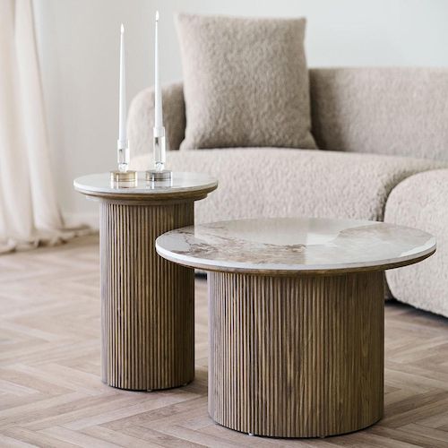 Table basse Lysa avec plateau effet marbre pour petits espaces