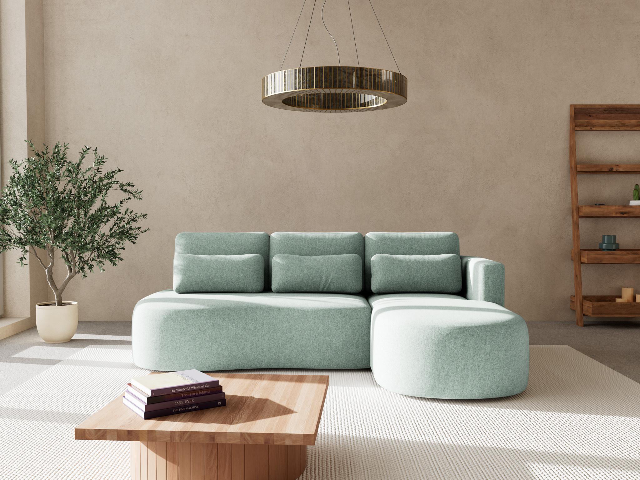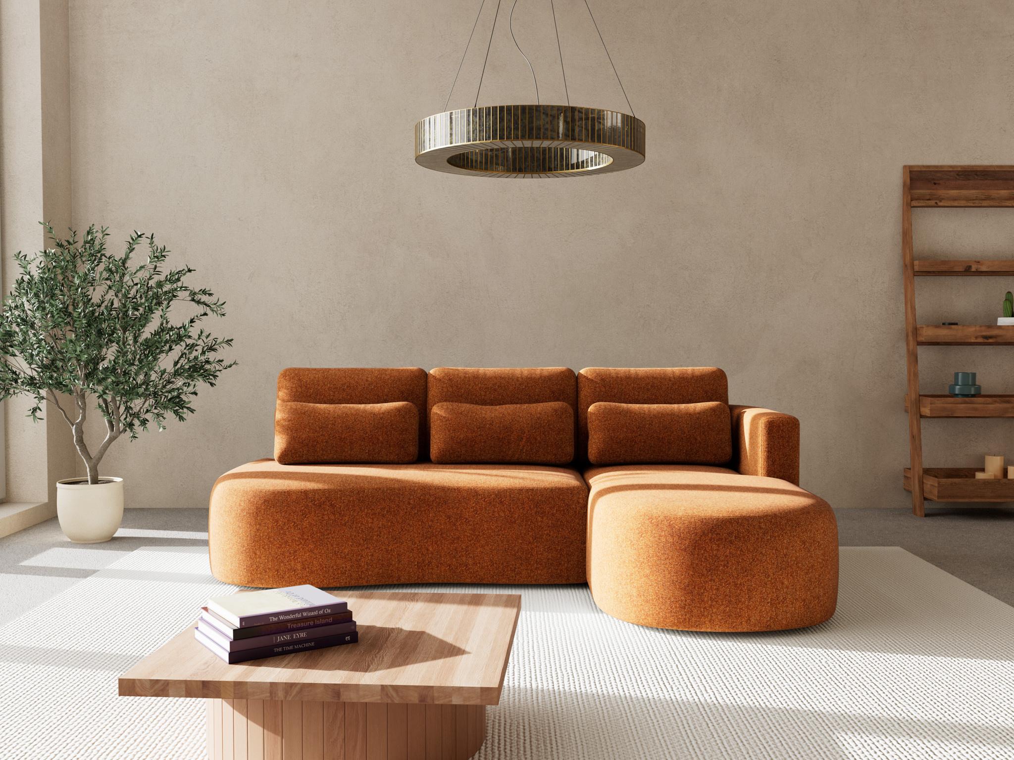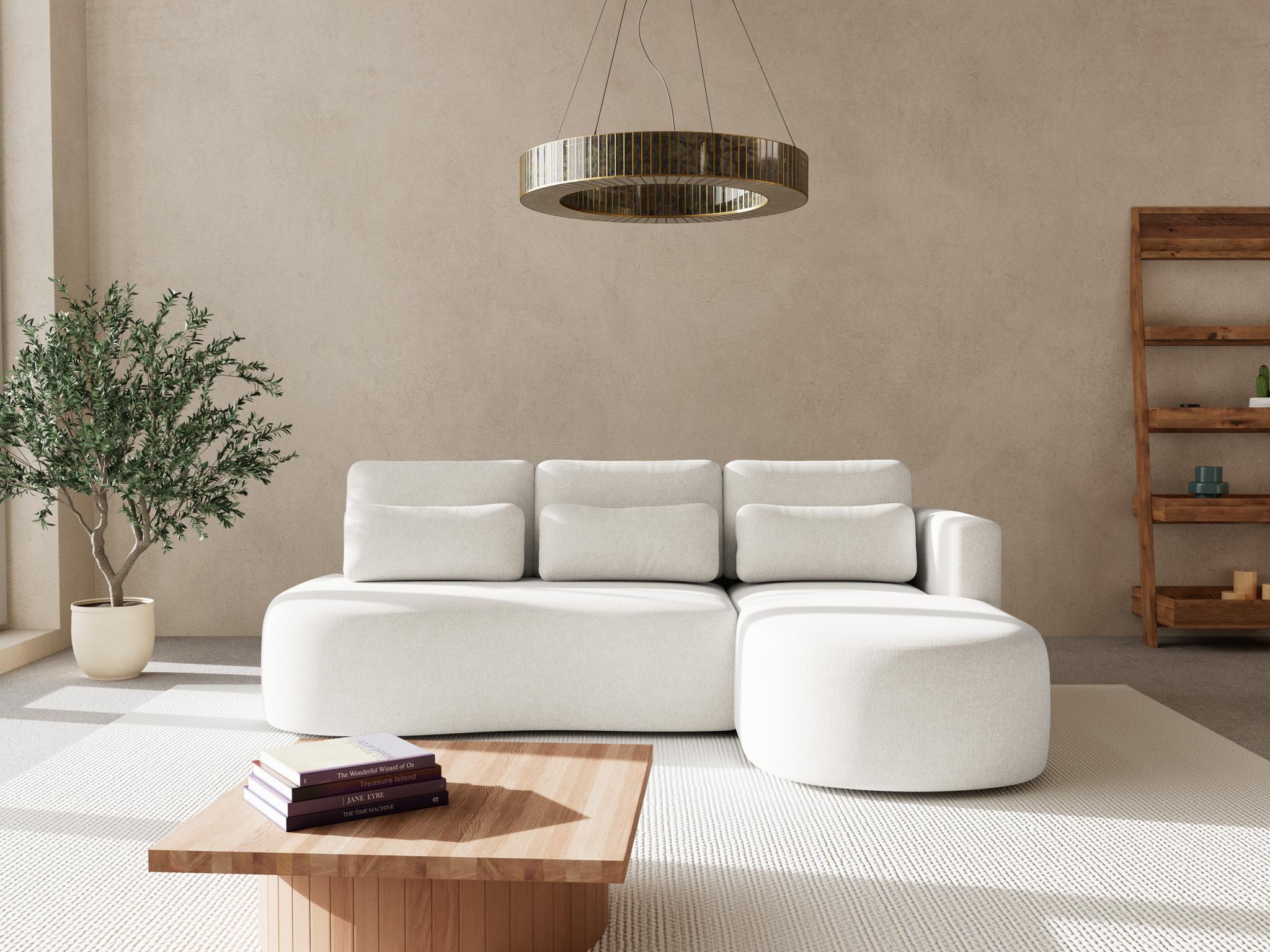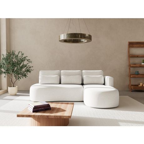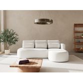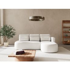 Créé par Lisa Design, le Mahina 4 places angle droit s'impose par son allure contemporaine et ses lignes arrondies. Sa grande méridienne lui donne un look original tout en adoucissant l'espace. Convertible en lit d'appoint, il offre une solution idéale pour accueillir vos invités. Avec son coffre de rangement discret, il vous aide à garder un salon bien organisé, sans compromis sur le style.