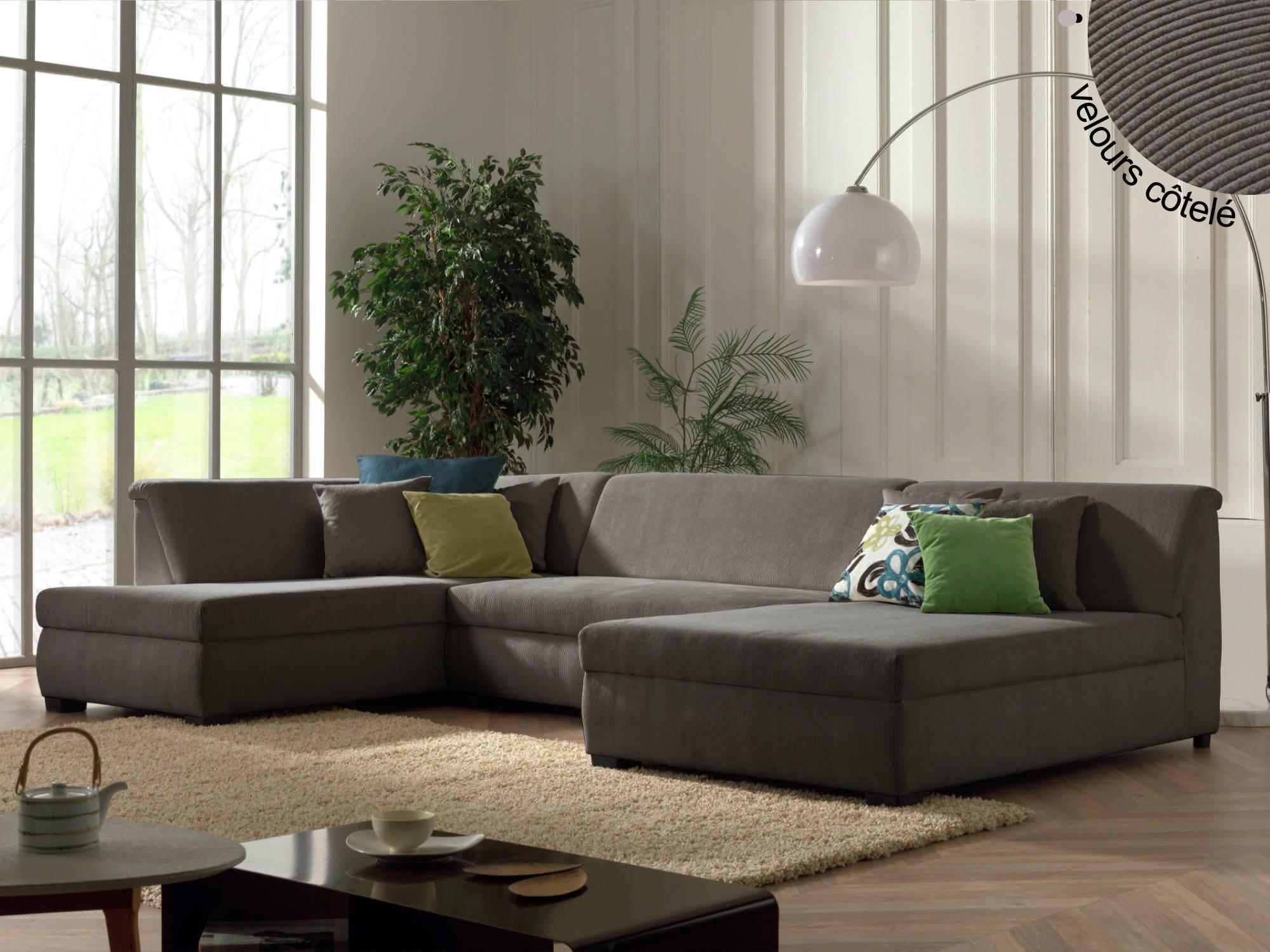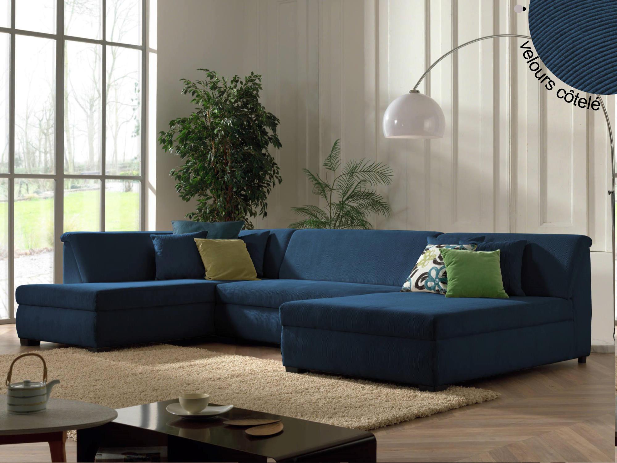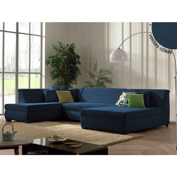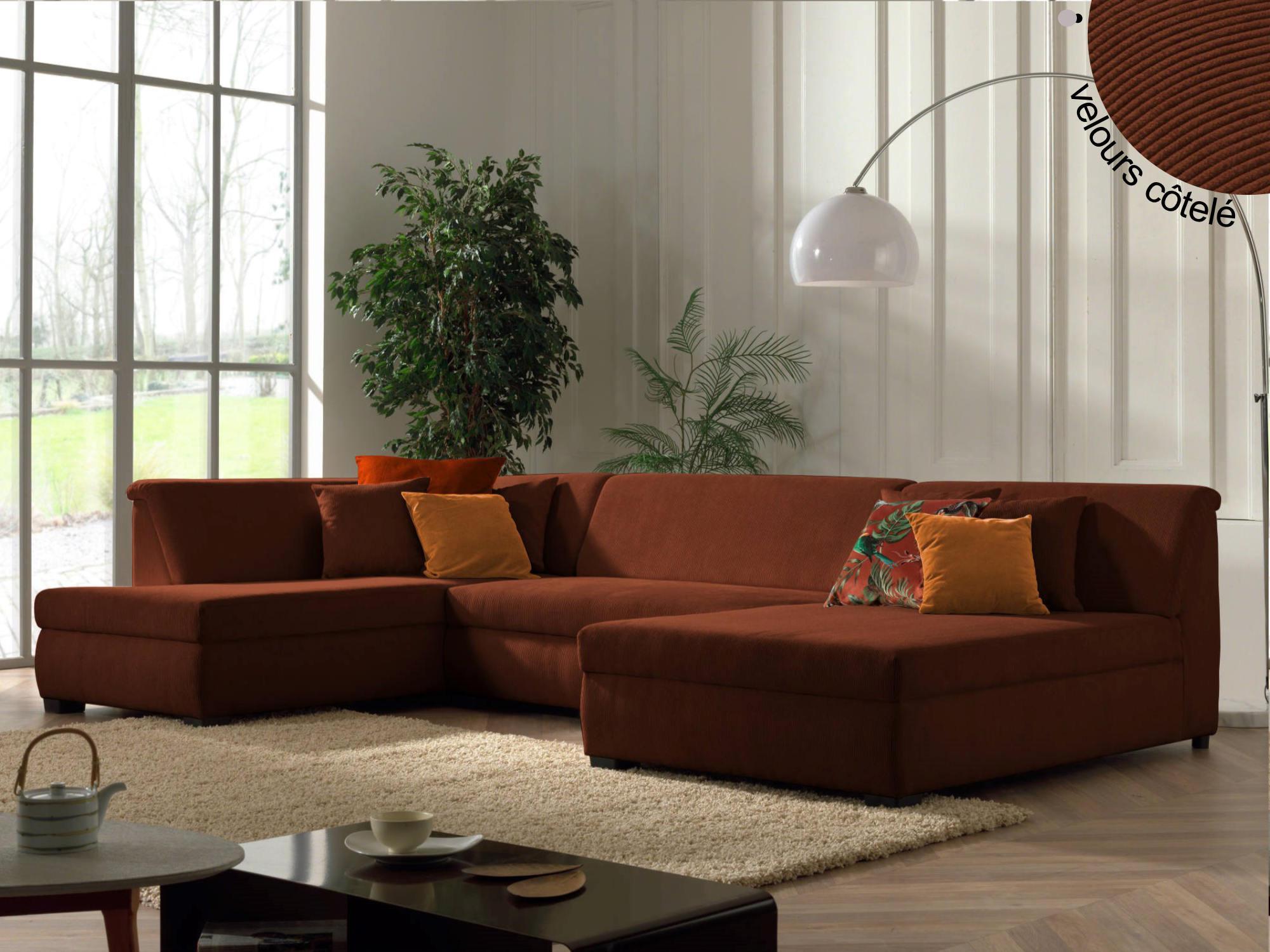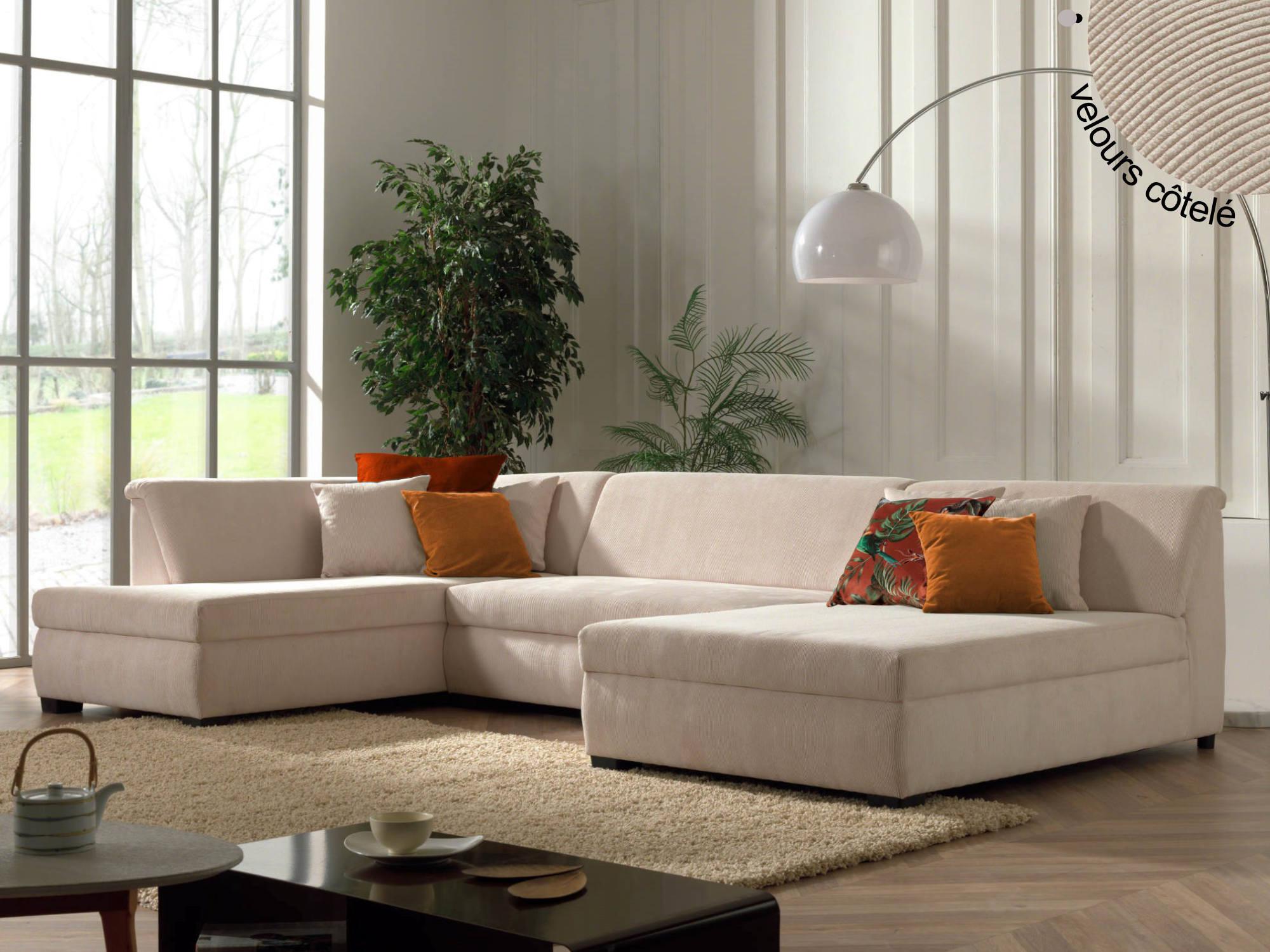Malcom - canapé panoramique d'angle gauche - en velours côtelé