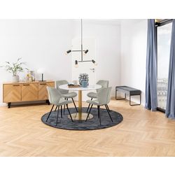 Les chaises Manilla apportent une touche contemporaine à votre intérieur grâce à leur design élégant et leur couture carrée décorative. Leur revêtement en tissu microfibre doux offre un confort optimal tout en ajoutant une texture agréable au toucher. Associées à des pieds ronds en métal noir, elles créent un contraste harmonieux qui renforce leur style moderne tout en assurant une excellente stabilité.