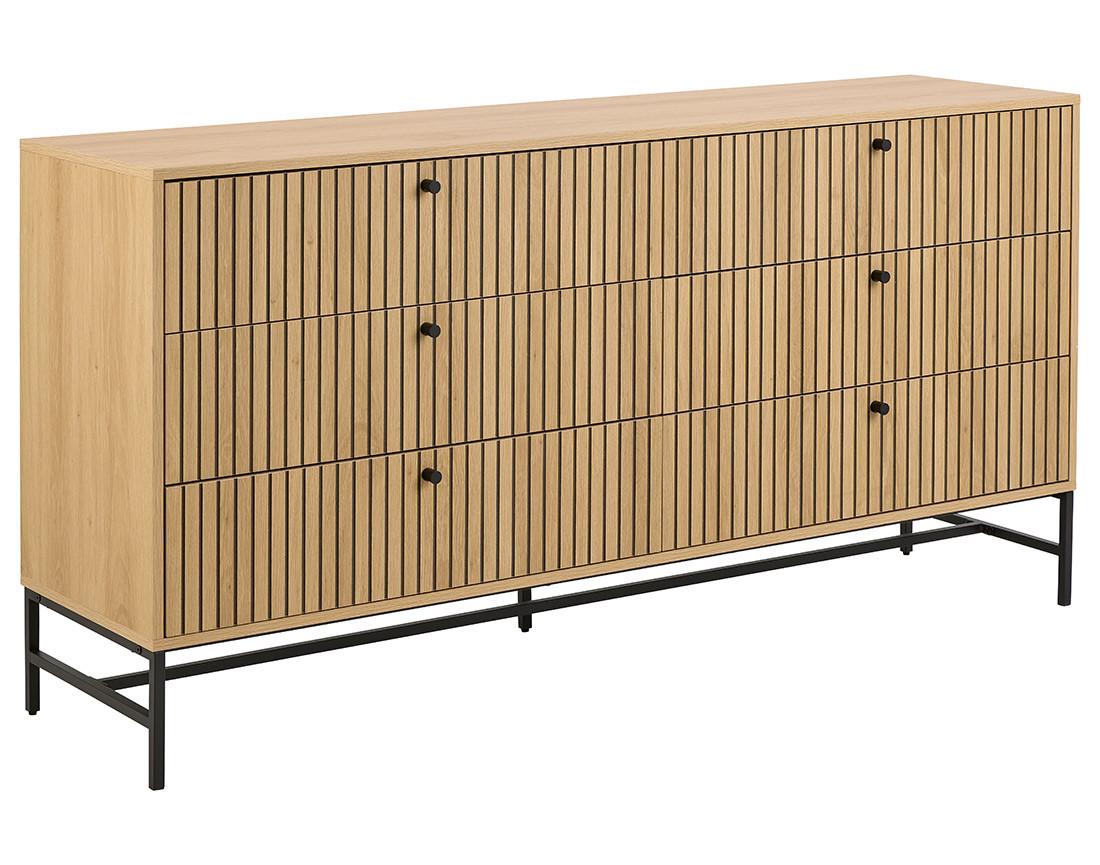 Avec ses façades finement lignées, la commode Marc affiche un look résolument contemporain. Ce motif discret ajoute du relief tout en conservant une allure épurée. Son piétement en métal noir apporte une touche industrielle subtile et assure une bonne stabilité. Une pièce à la fois fonctionnelle et esthétique, parfaite pour structurer l'espace avec caractère.