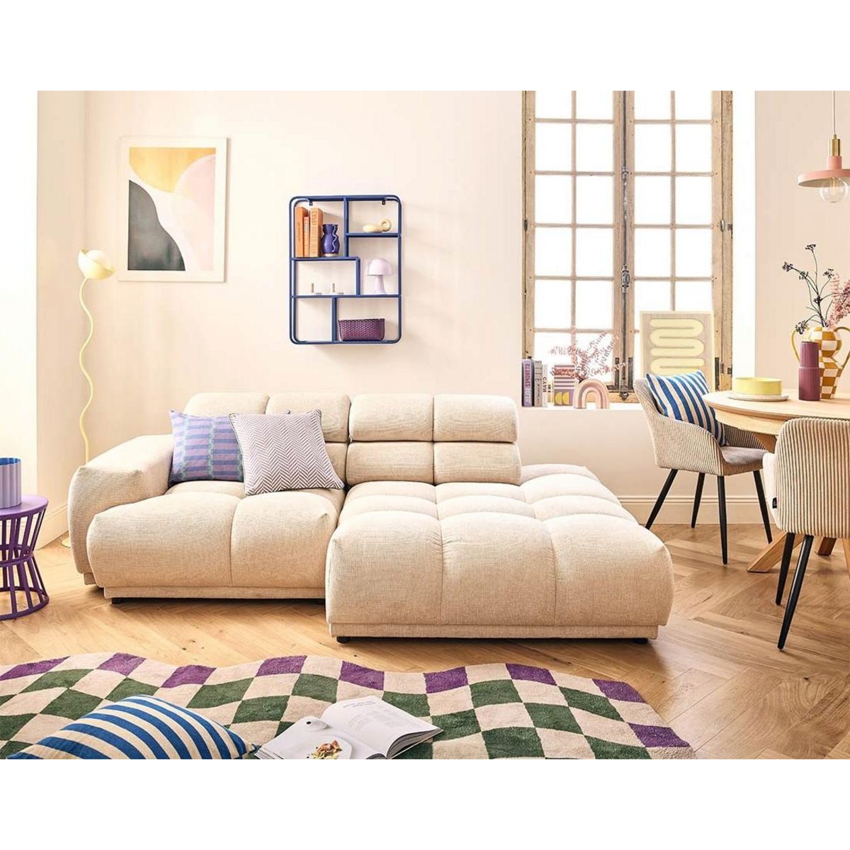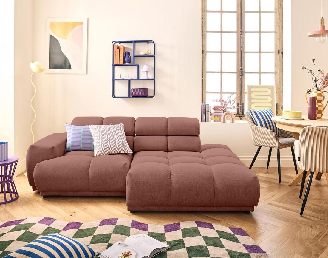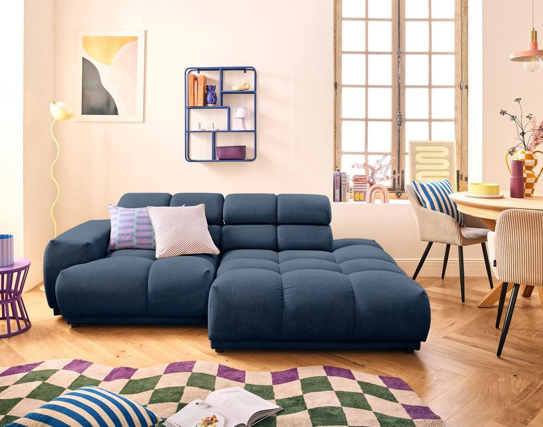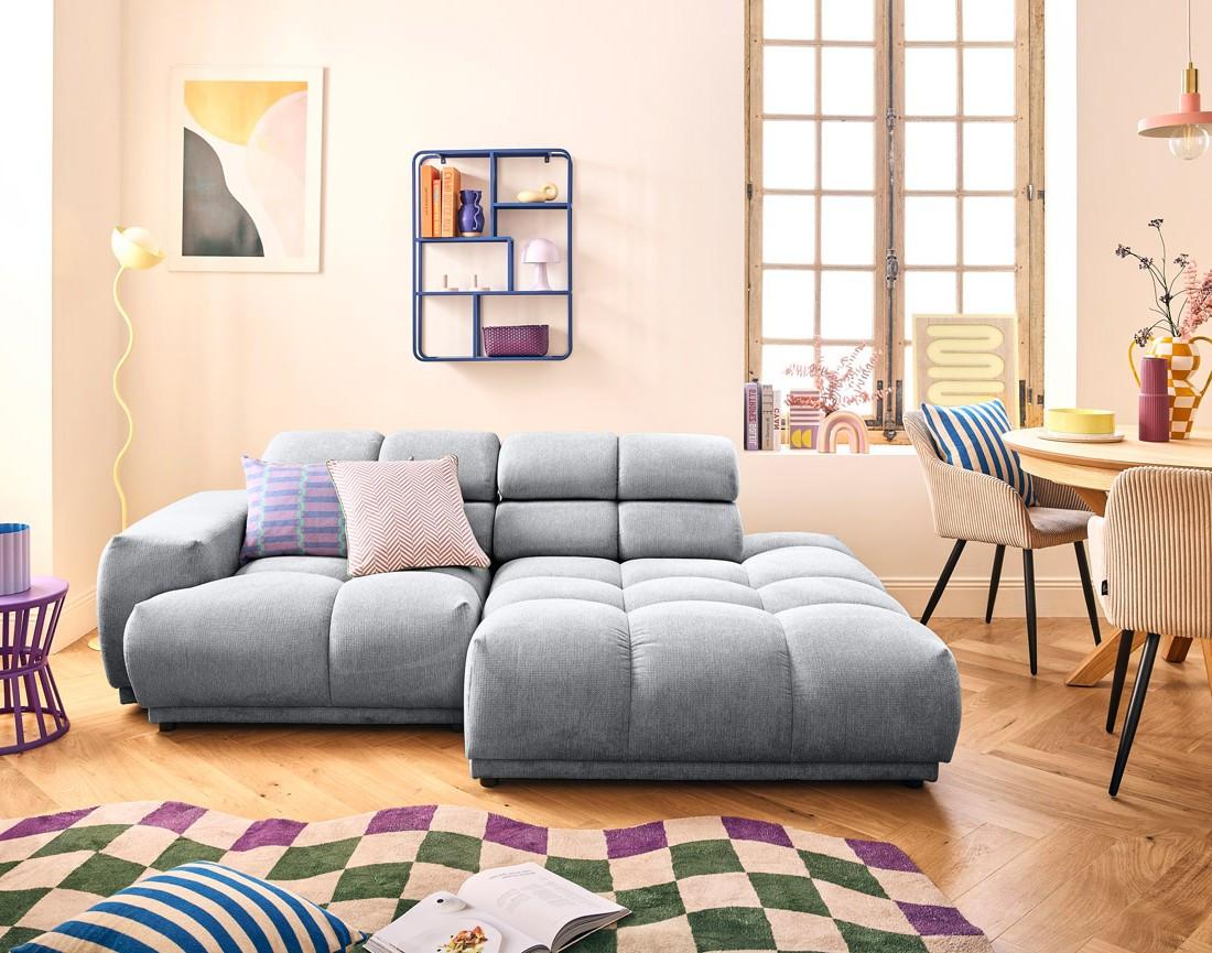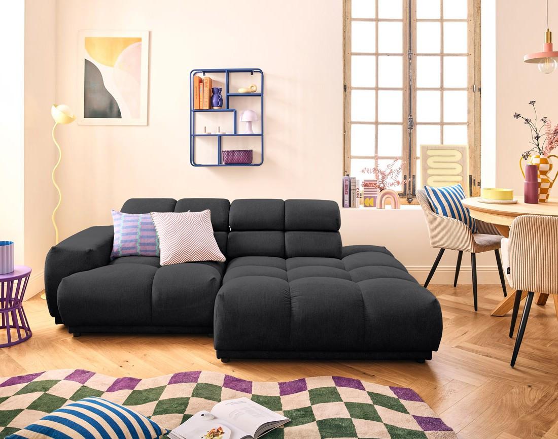 Matera - canapé d'angle droit 3 places avec têtières réglables en tissu texturé