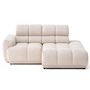 Le canapé d'angle Matera est pensé pour vous offrir un confort incomparable. En plus de son design à l'effet nuage, il possède des appuie-têtes modulables qui vous permettront d'ajuster leur hauteur selon vos besoins, que vous soyez assis pour discuter ou allongé pour regarder un film. Avec son style Bubble , le canapé Matera affiche une silhouette à l'assise généreuse et rebondie, parfaite pour ajouter une touche d'originalité à votre salon. Son revêtement en tissu texturé est particulièrement doux au toucher et durabilité. Nous avons aussi sélectionné des matériaux de haute qualité qui garantissent une assise moelleuse qui ne s'affaisse pas, même avec un usage intensif.