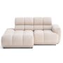 L'angle gauche du canapé Matera facilite l'aménagement d'un salon spacieux ou plus restreint, en structurant naturellement l'espace. Pour renforcer l'équilibre visuel de la pièce, nous vous conseillons de placer une table basse aux lignes arrondies au centre. En choisissant des luminaires sur pied ou des lampes d'appoint, vous accentuerez l'effet chaleureux de votre salon. N'hésitez pas à agrémenter le canapé de coussins ou d'un plaid cosy pour un look encore plus accueillant.