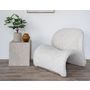 - Détail des matières : Structure en contreplaqué– Revêtement en tissu bouclette – Pieds en contreplaqué