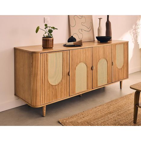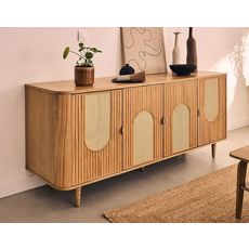 Milazzo - buffet bas - bois plaqué chêne et cannage - 4 portes - 176 cm