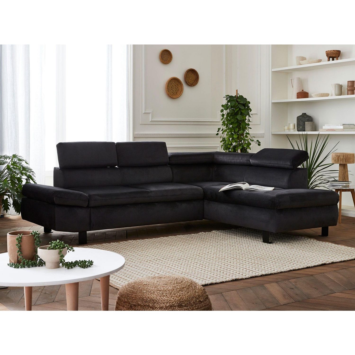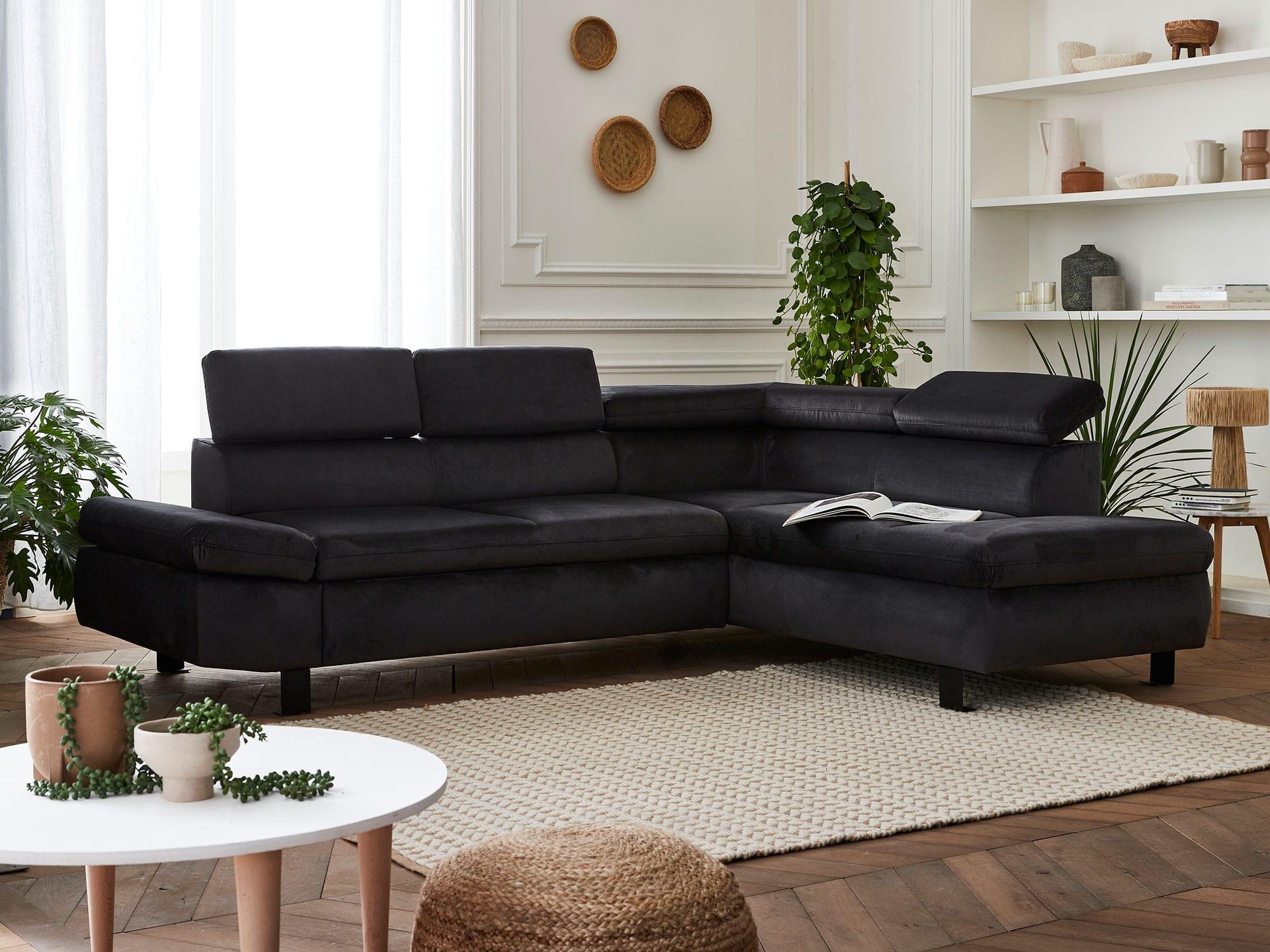 Un canapé d'angle velours au design moderne