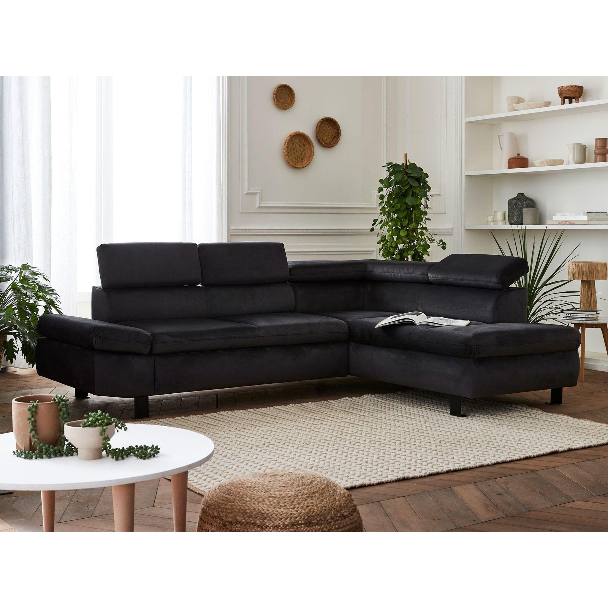 Nairobi - canapé d'angle convertible - en velours - 5 places - avec têtières - droit