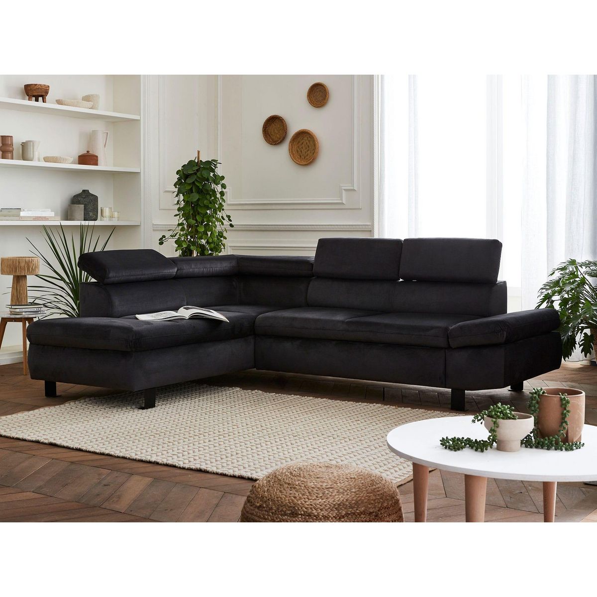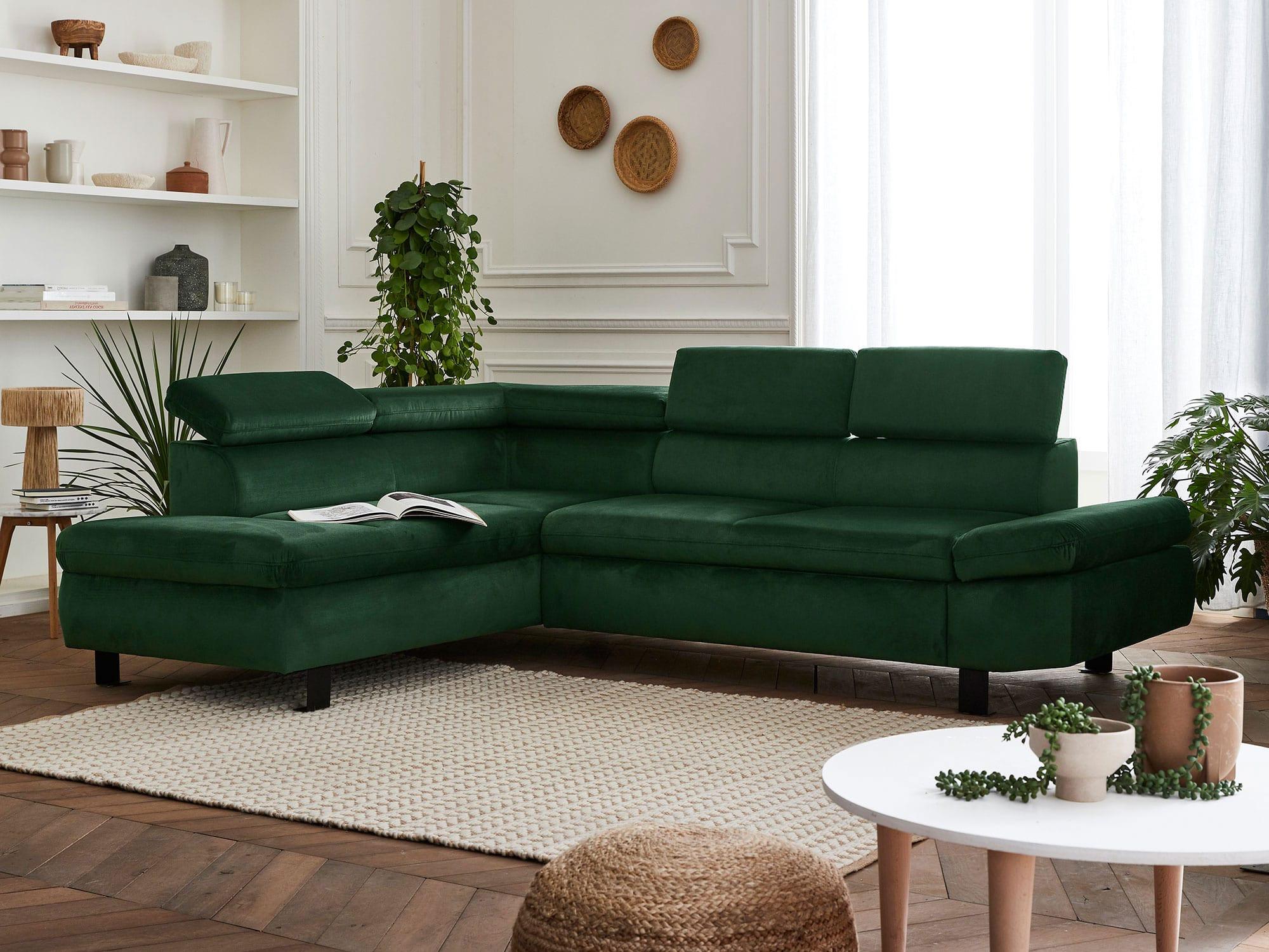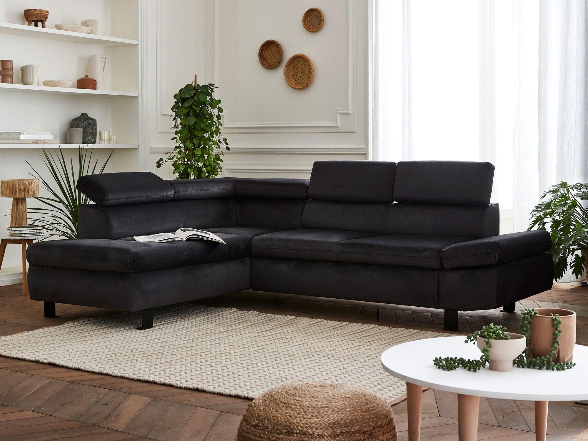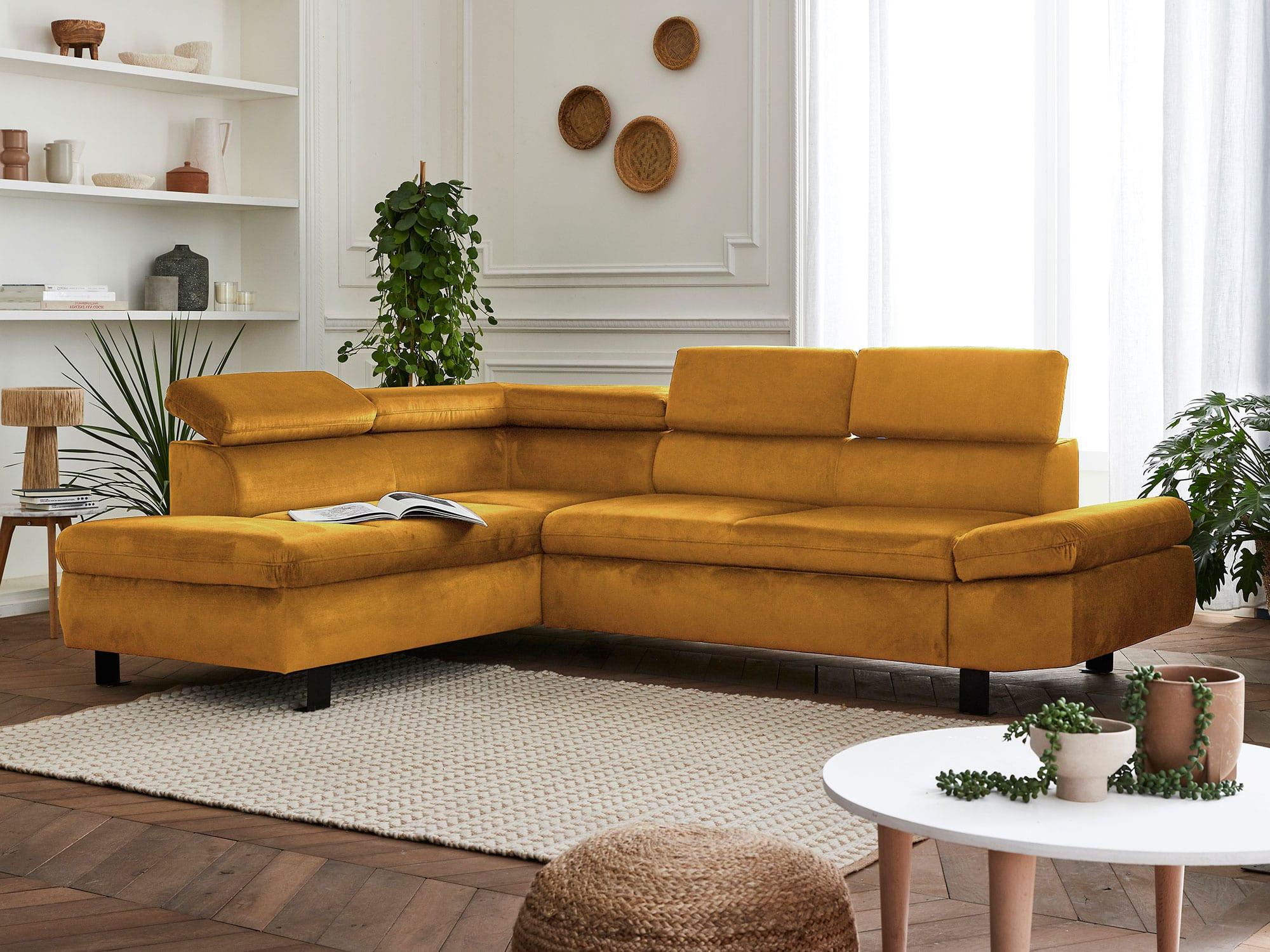 Un canapé d'angle velours au design moderne