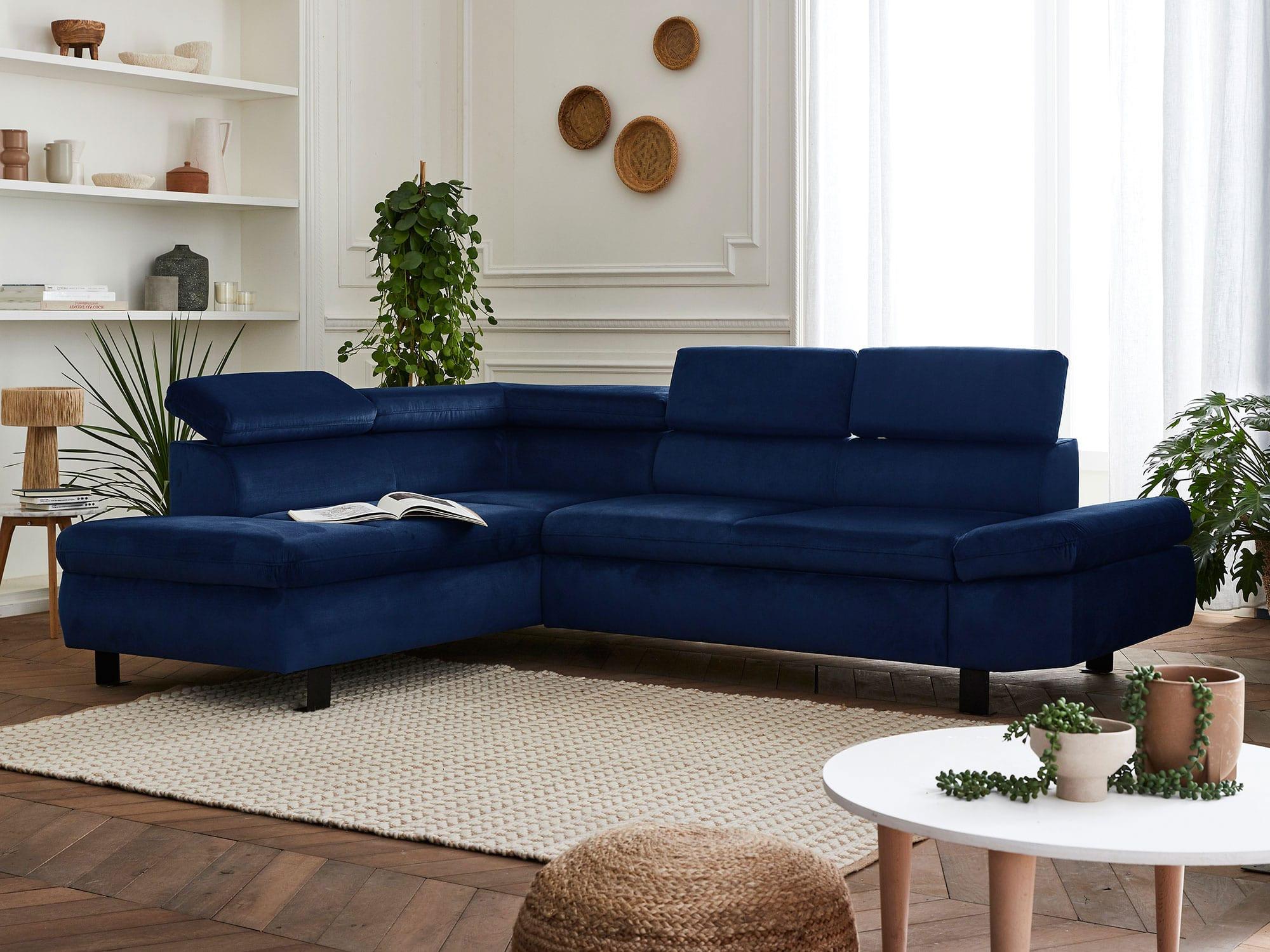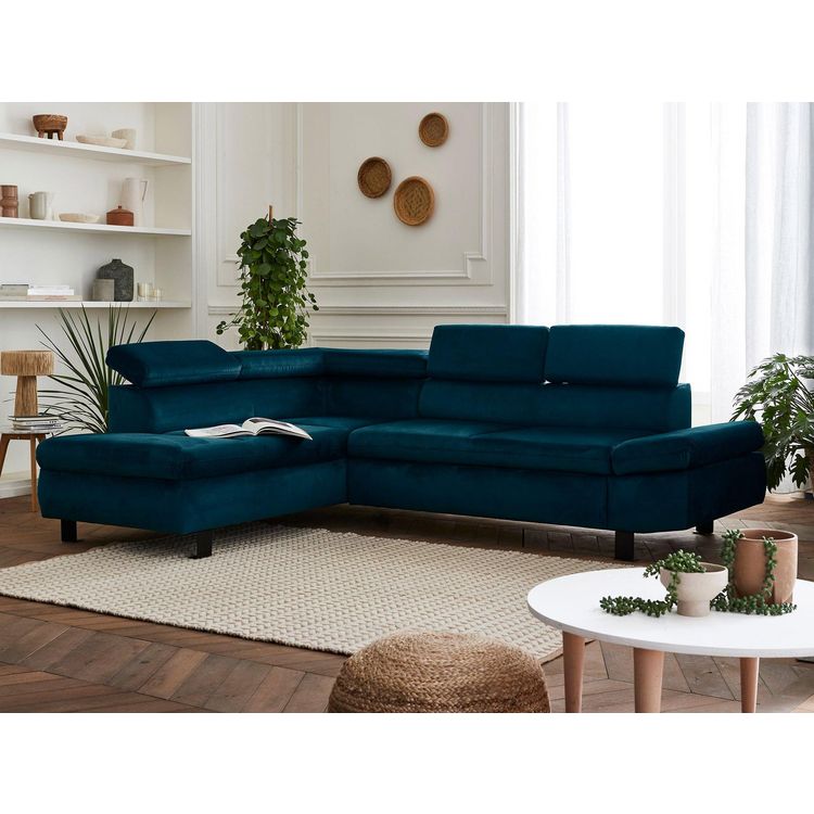 Nairobi - canapé d'angle convertible - en velours - 5 places - avec têtières - gauche