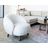 - Détail des matières : Structure en bois – Revêtement en tissu bouclette – Pieds en bois d'hévéa