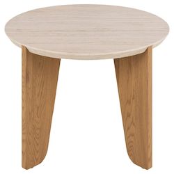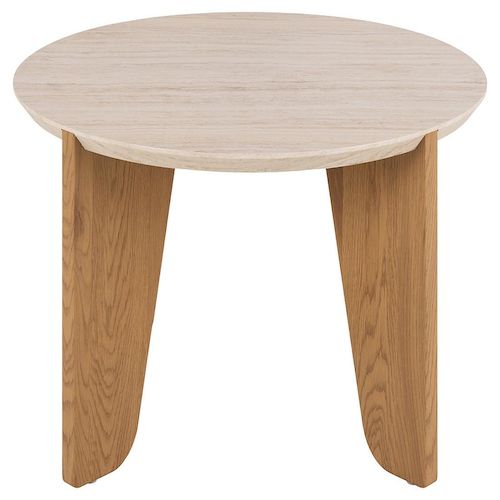 Noeva - table basse - pieds en chêne - plateau effet travertin - 80 cm