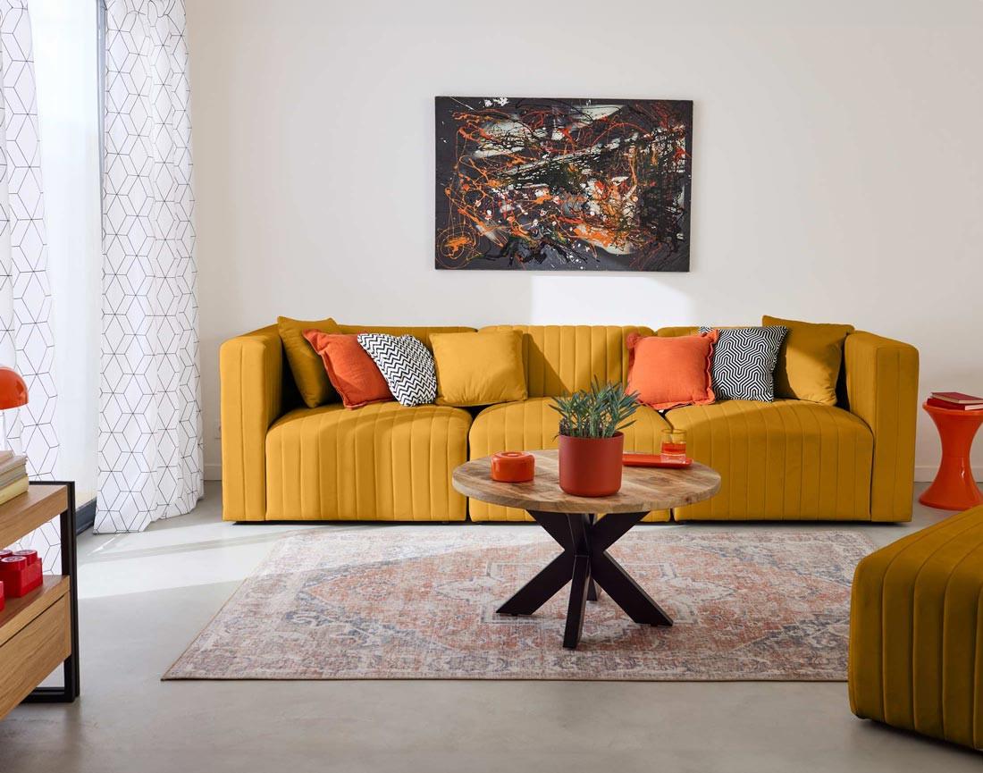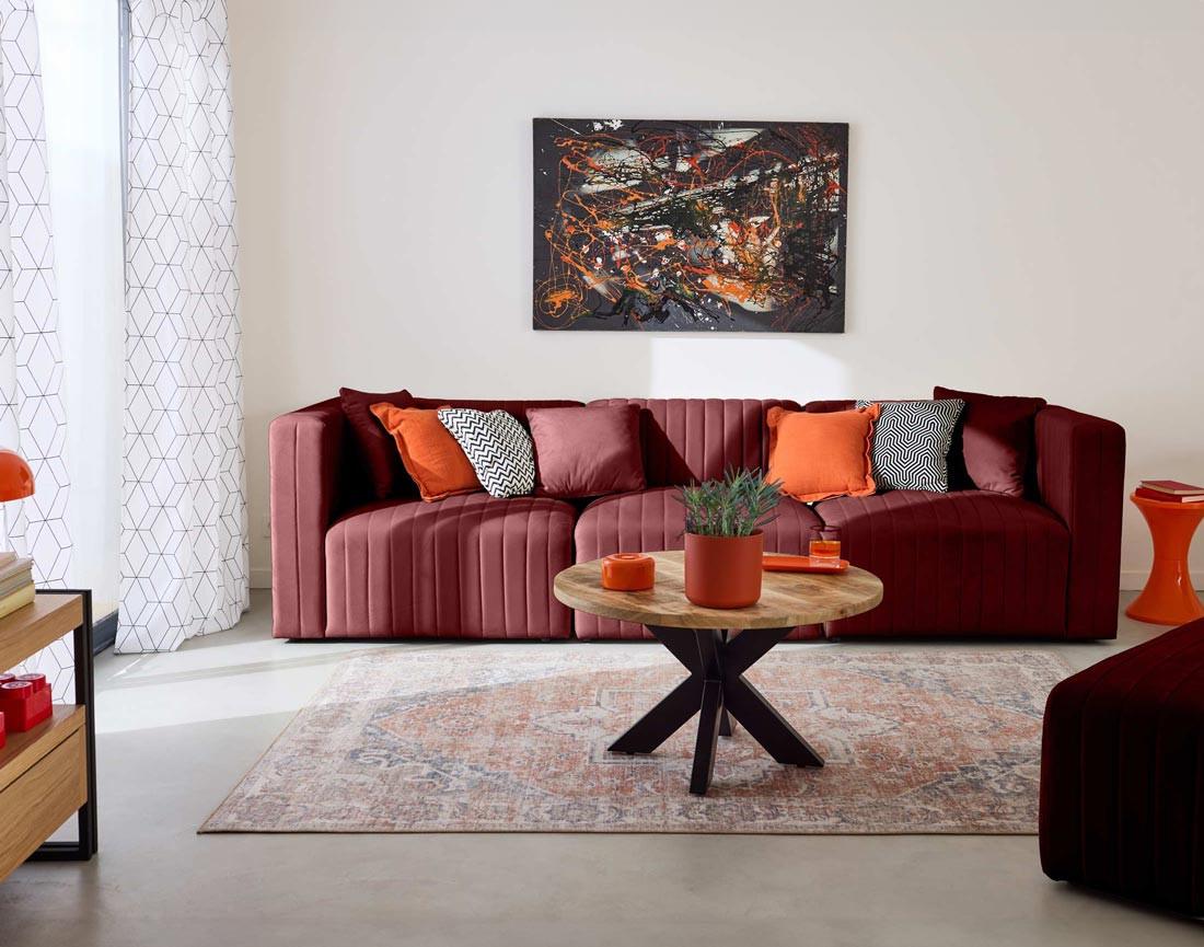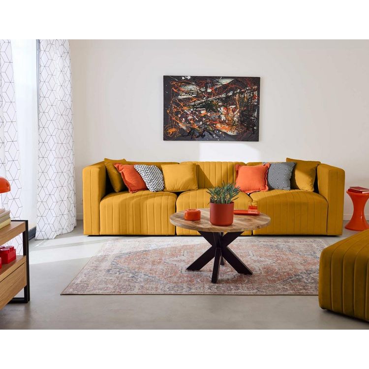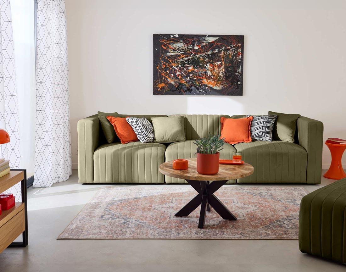 Si vous souhaitez créer une ambiance chaleureuse et cocooning dans l'une des pièces à vivre de votre maison, nul doute que le canapé modulable Nova saura répondre à vos attentes. Au travers de ses formes arrondies et de son revêtement en velours doux au toucher, ce canapé 3 places apportera une ambiance chaleureuse et réconfortante dans votre espace intérieur. On l'apprécie également pour ses coloris ainsi que son design épuré qui s'harmonisent parfaitement avec des coloris pastels et des couleurs chaudes. Son style sensiblement contemporain s'adresse aux amateurs de décoration d'intérieur à la fois subtile et délicate. Ce canapé modulable trônera en véritable pièce maîtresse au sein de votre salon pour vos moments de détente.
